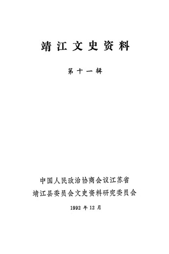 靖江文史資料第十一輯_政協江蘇省靖江縣委員會文史資料研究委員會