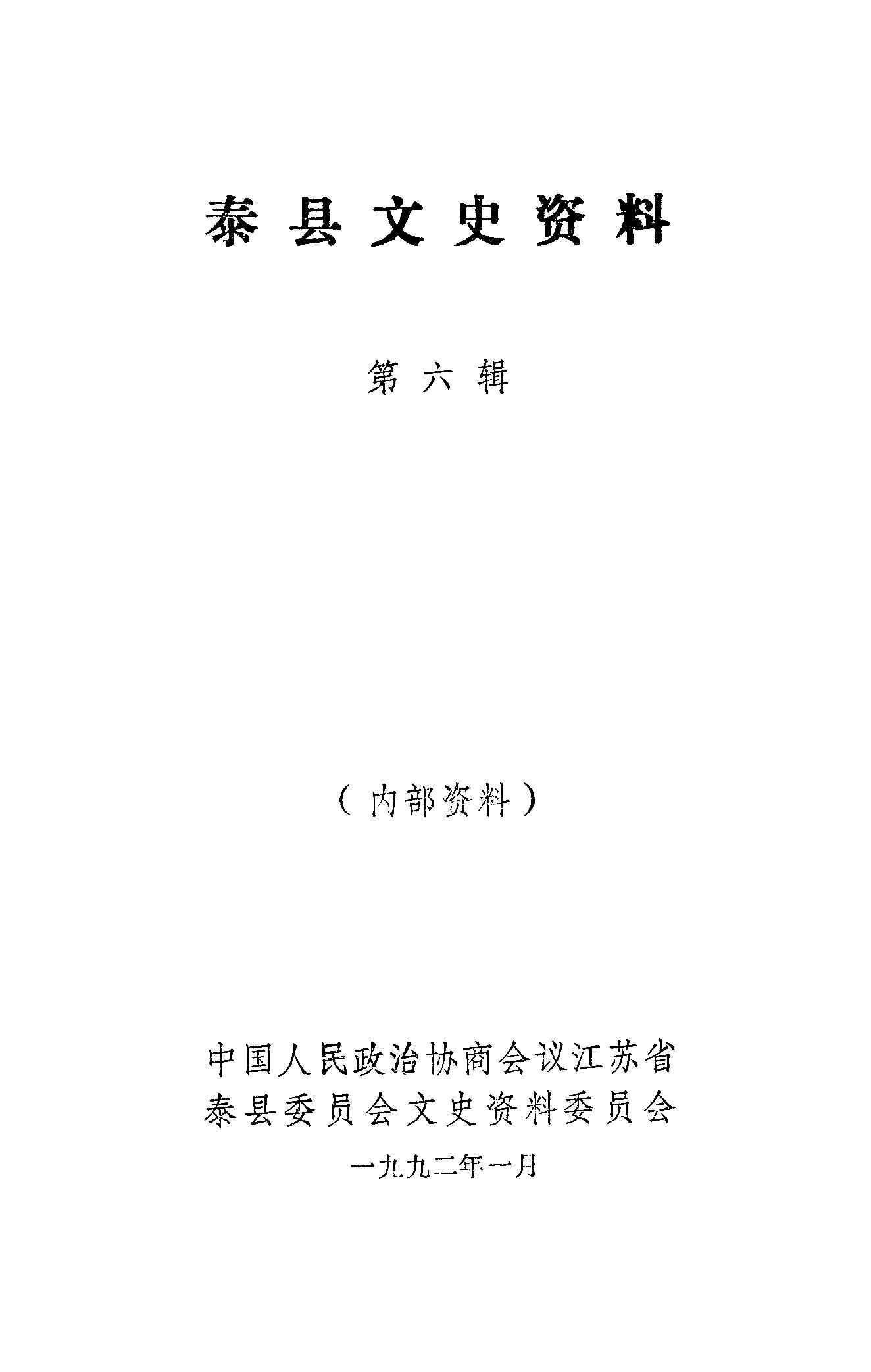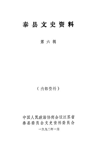 泰縣文史資料第六輯_政協江蘇省泰縣委員會文史資料委員會