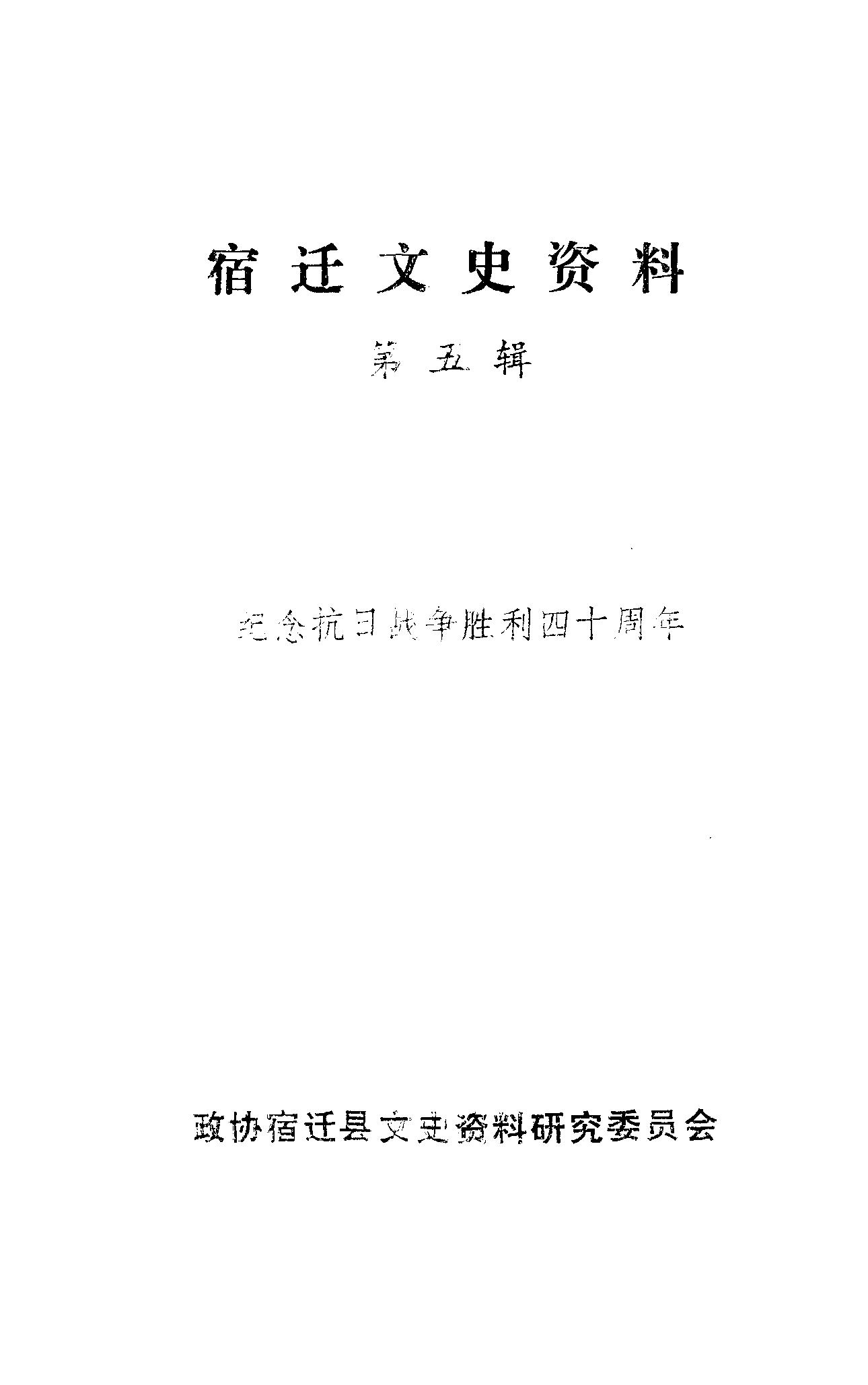 宿遷文史資料第五輯_政協宿遷縣文史資料研究委員會