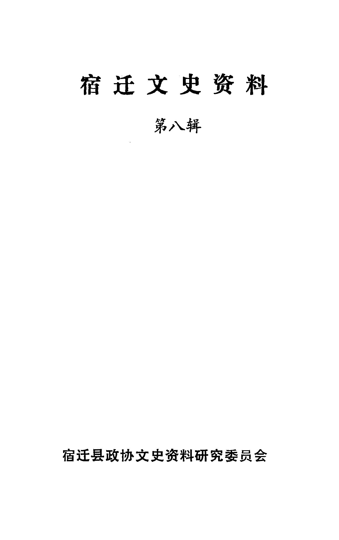 宿遷文史資料第八輯_宿遷縣政協文史資料研究委員會
