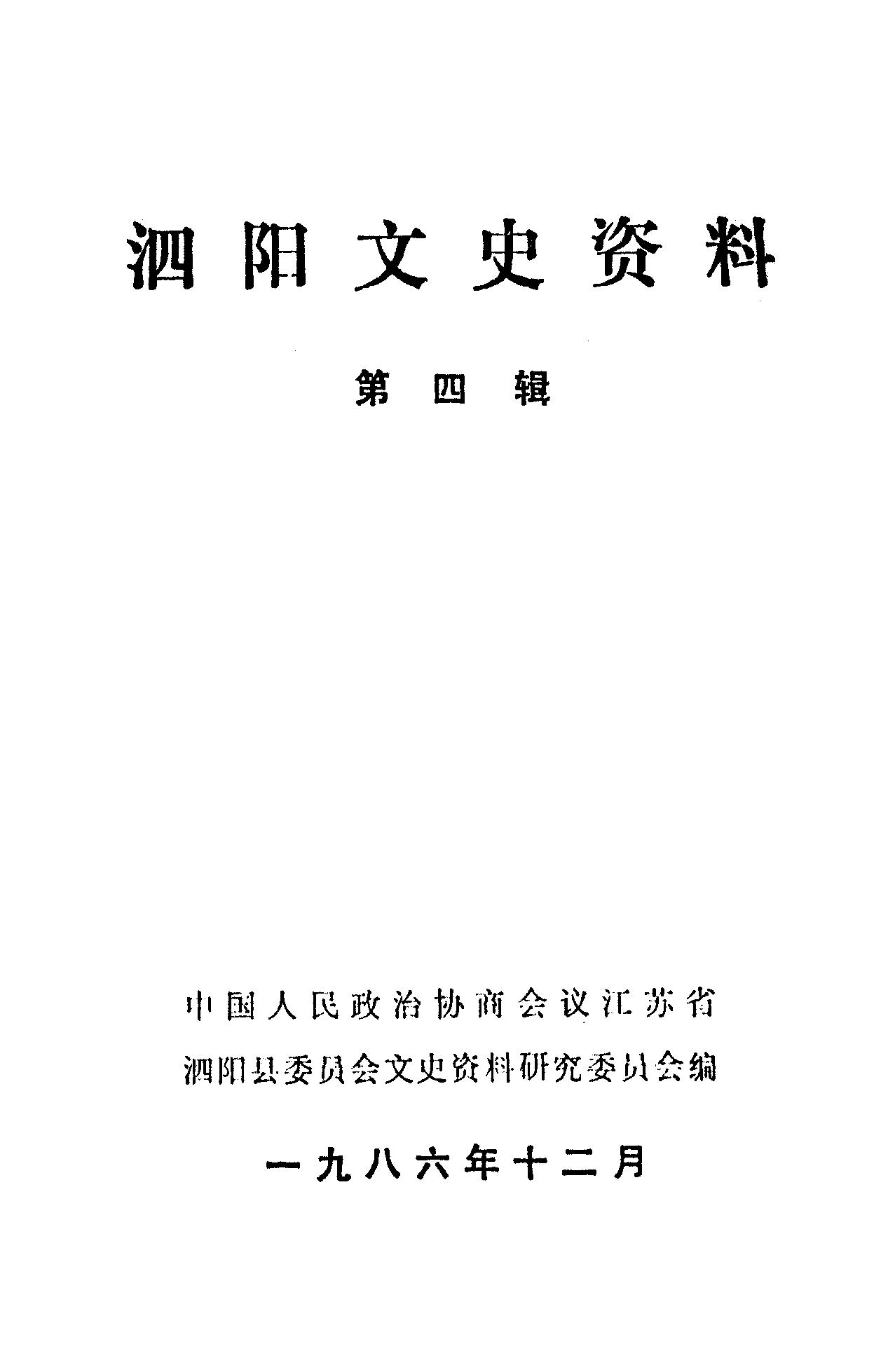 泗陽文史資料第四輯_政協江蘇省泗陽縣委員會文史資料研究委員會