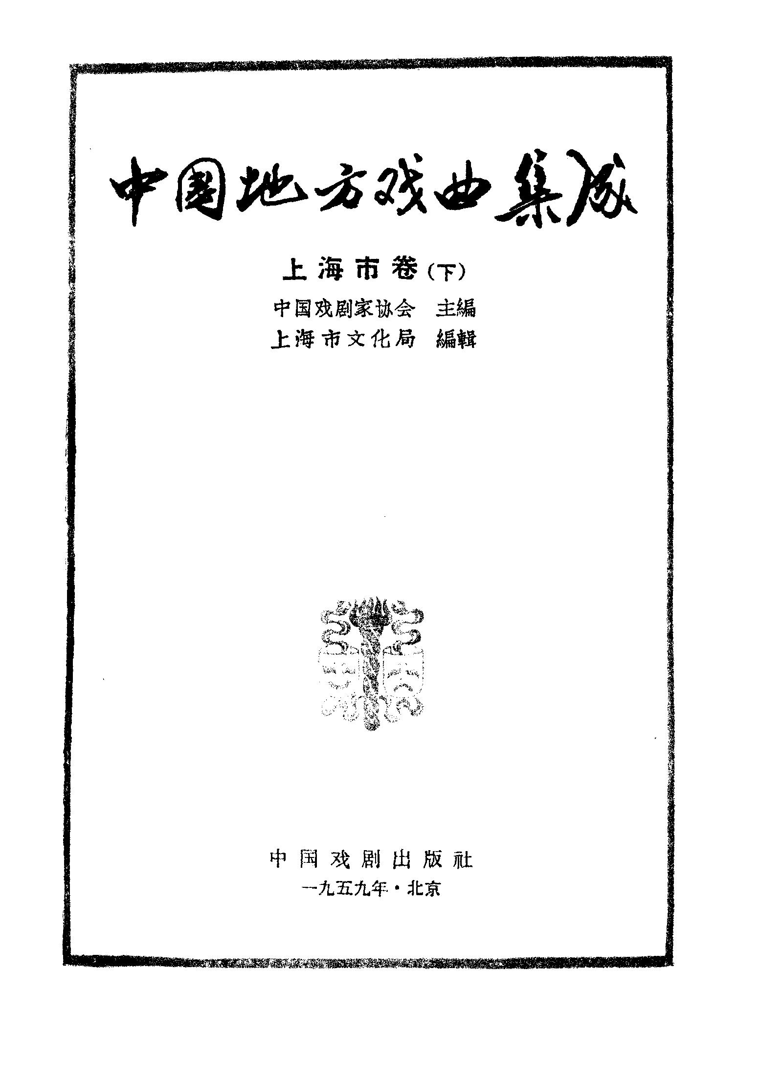中國地方戲曲集成上海市卷下_中國戲劇出版社北京