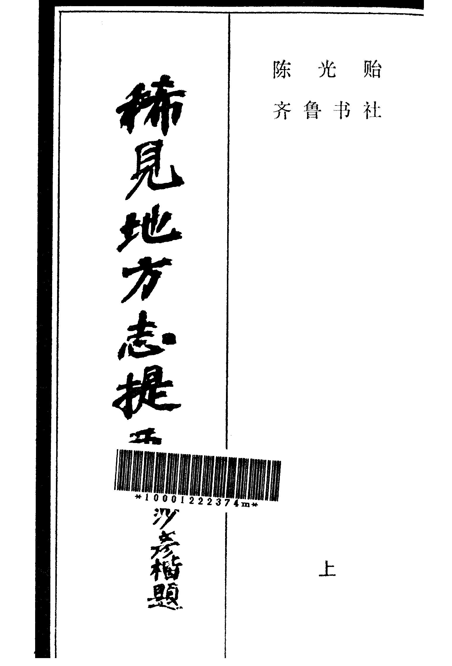 稀見地方志提要上冊_齊魯書社濟南
