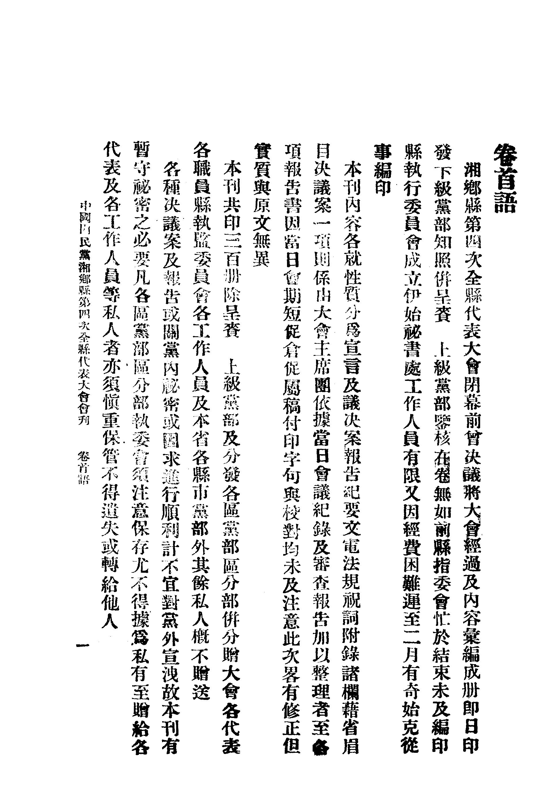 中國國民黨湘鄉縣第四次全縣代表大會會刊