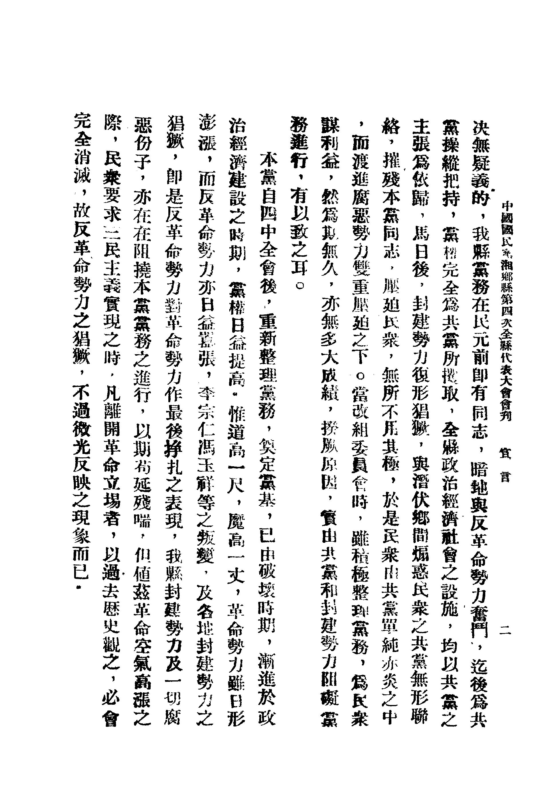 摘自《中國國民黨湘鄉縣第四次全縣代表大會會刊》