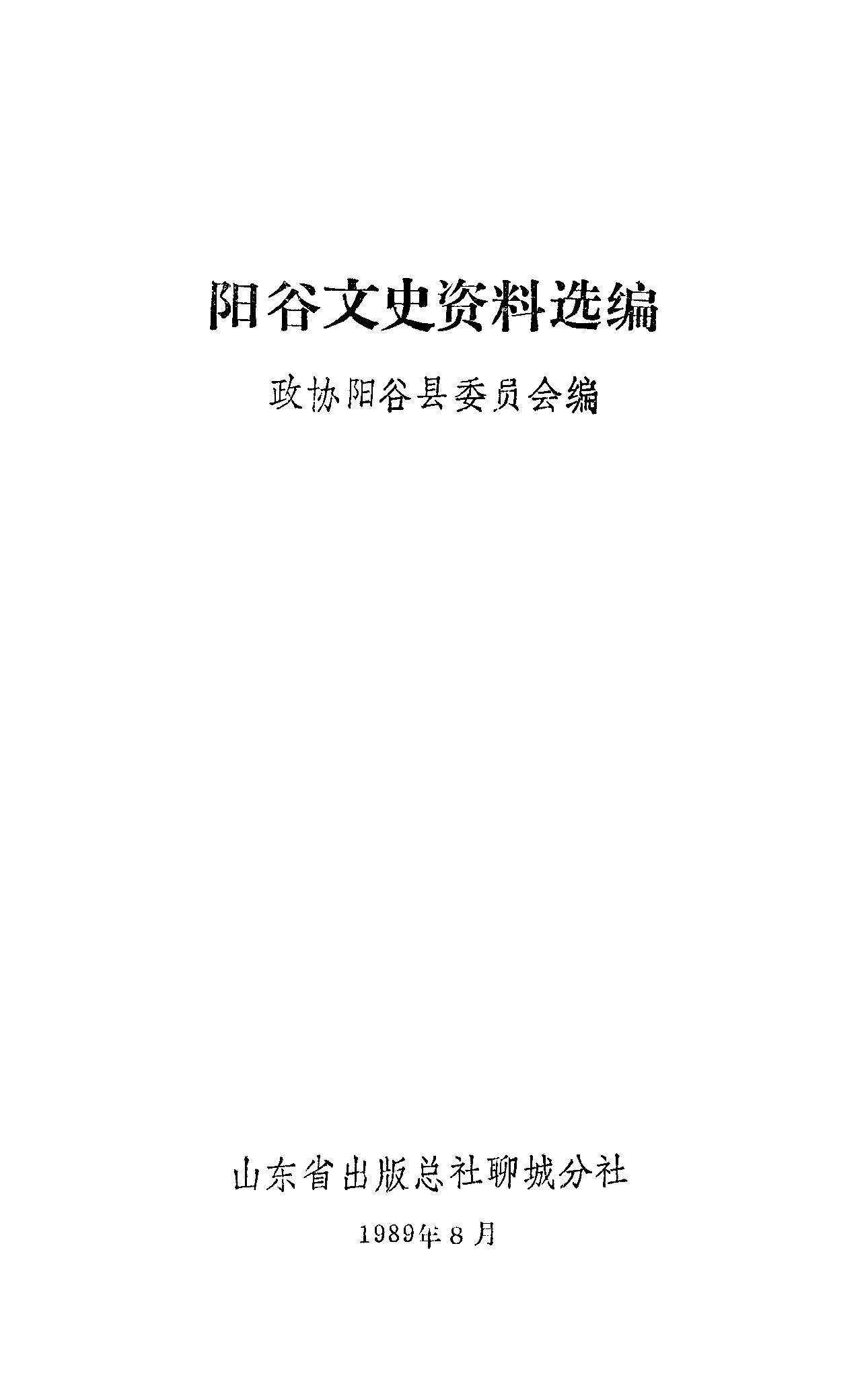 陽谷文史資料選編_政協陽谷縣委員會山朹省出版總社聊城分社