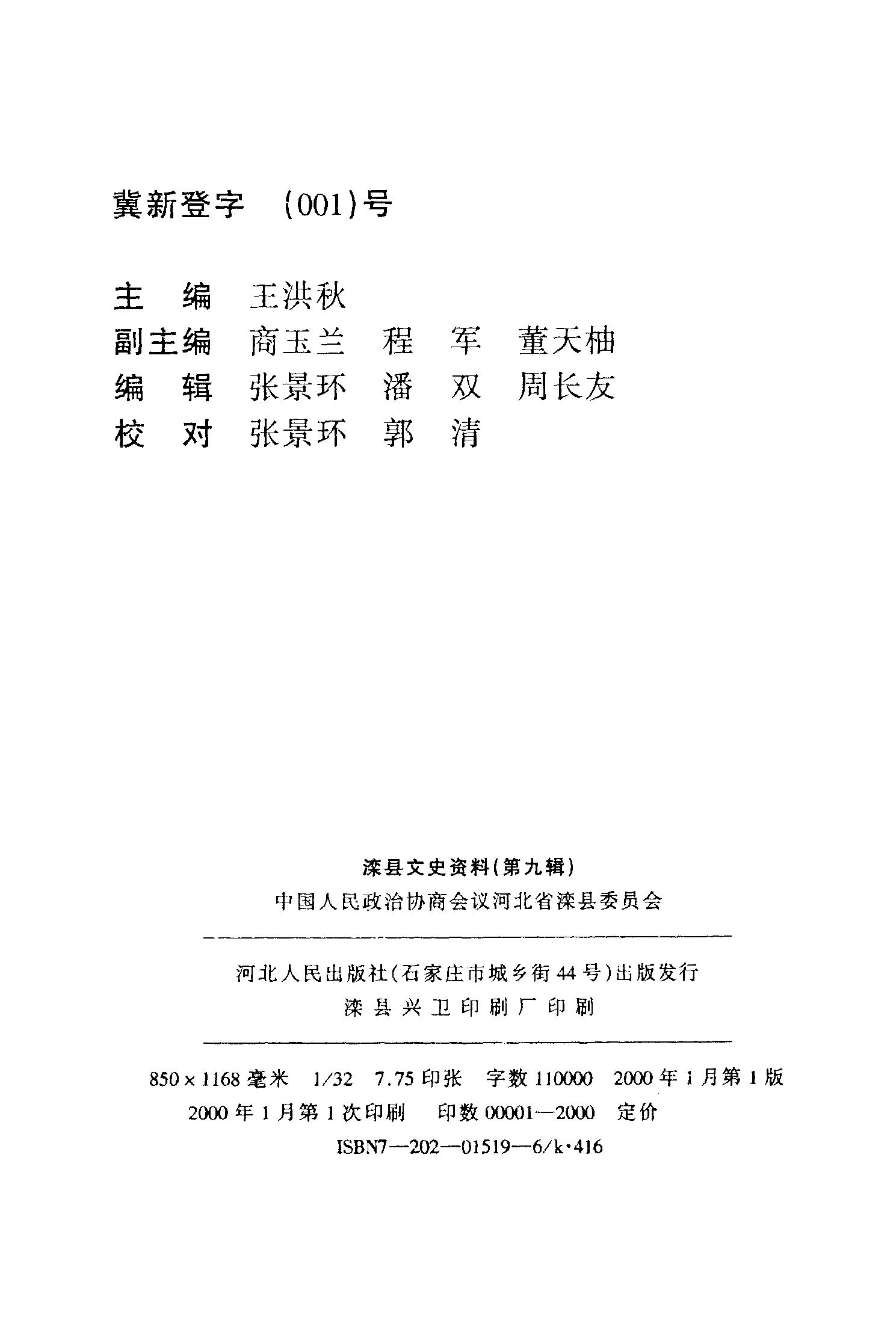 灤縣文史資料第九輯_政協河北省灤縣委員會河北人民出版社河北