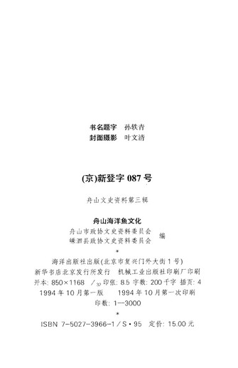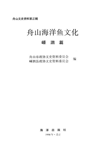 舟山文史資料第三輯_舟山市政協文史資料委員會嵊泗縣政協文史資料委員會海洋出版社北京