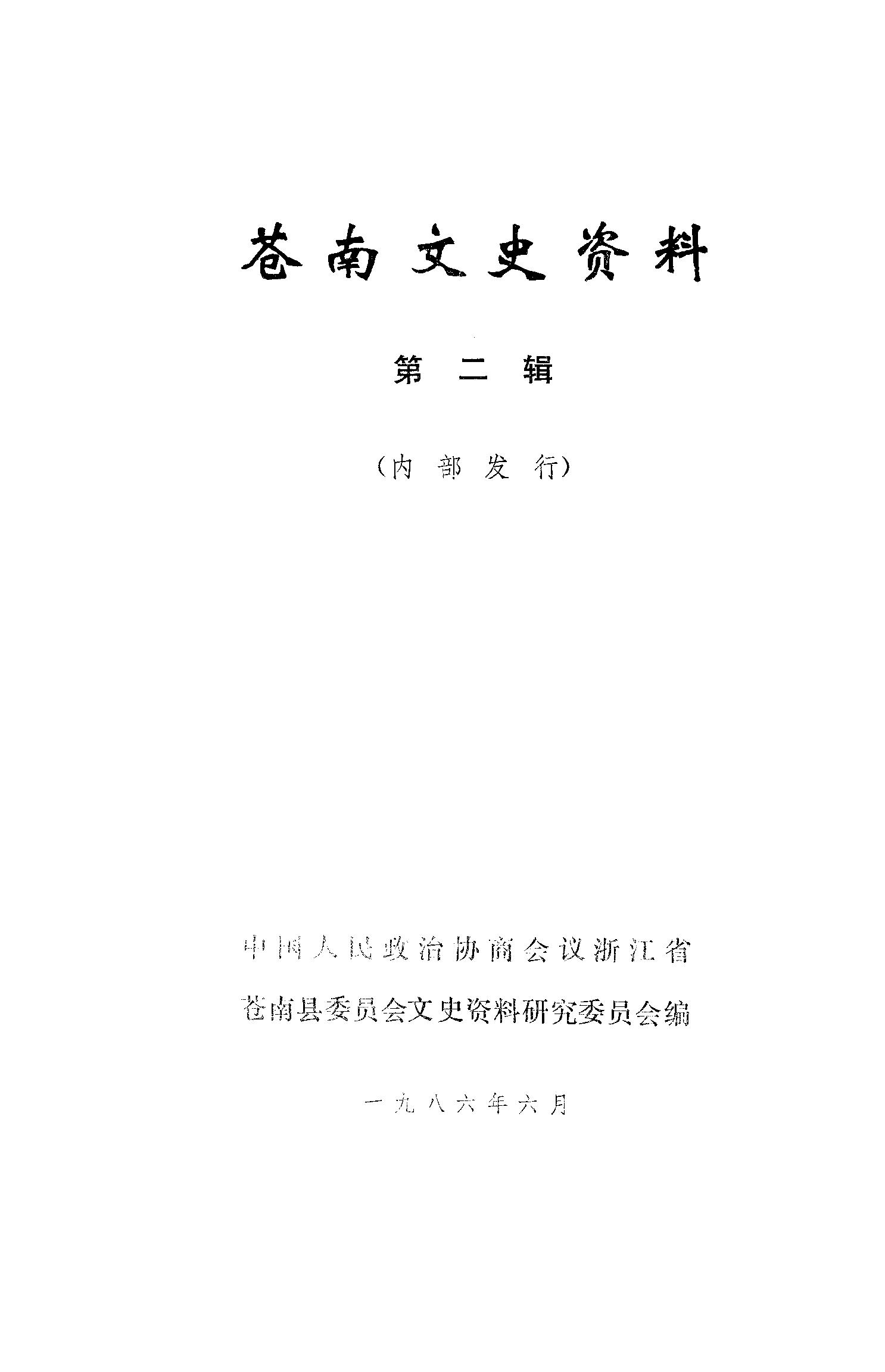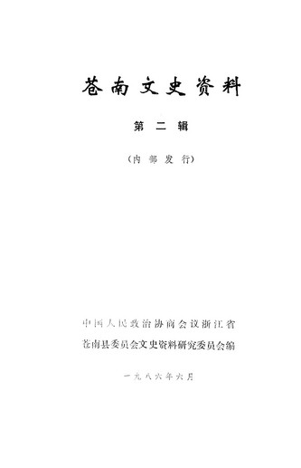 蒼南文史資料第二輯_政協浙江省蒼南縣委員會文史資料研究委員會
