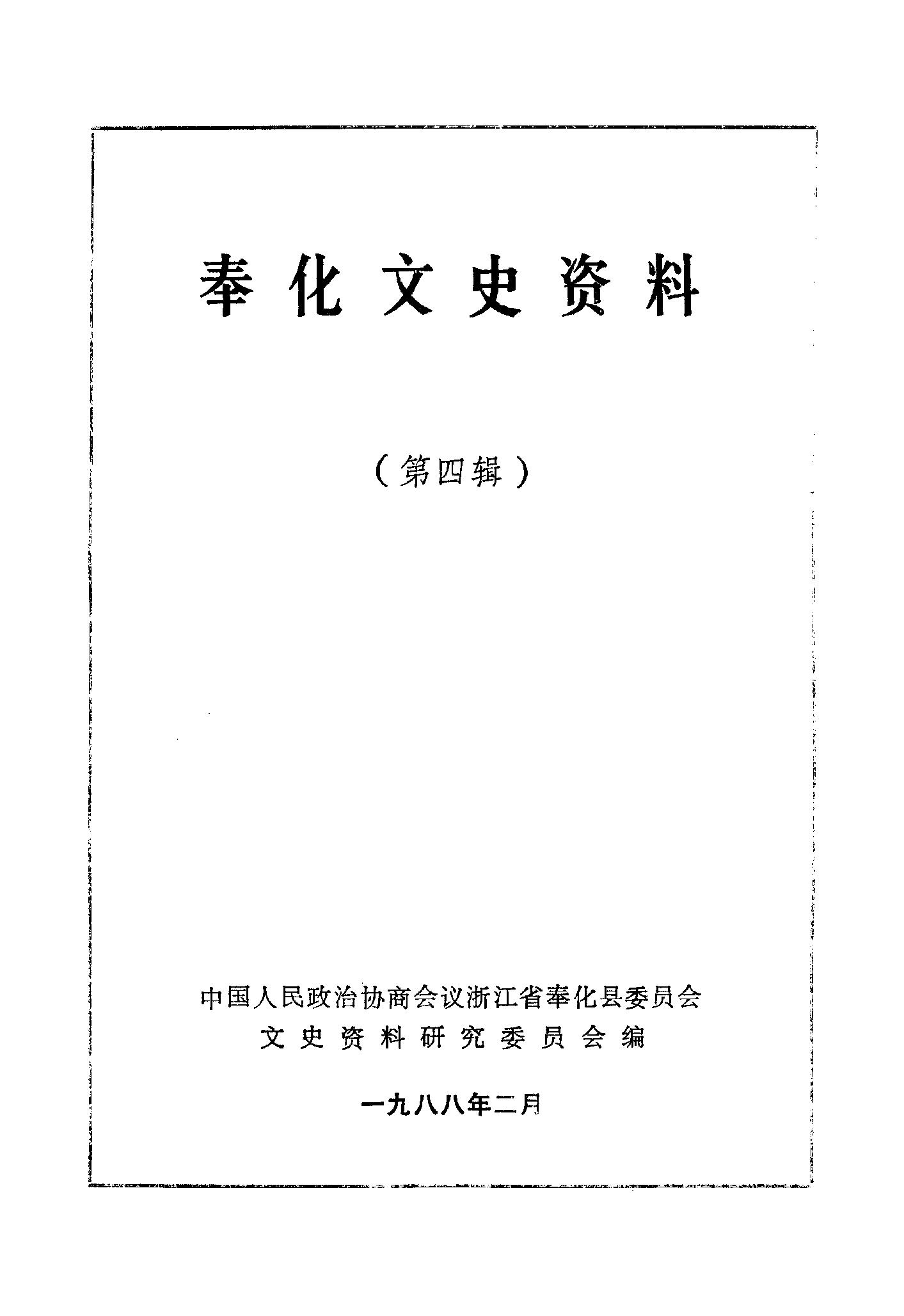 奉化文史資料第四輯_政協浙江省奉化縣委員會文史資料研究委員會