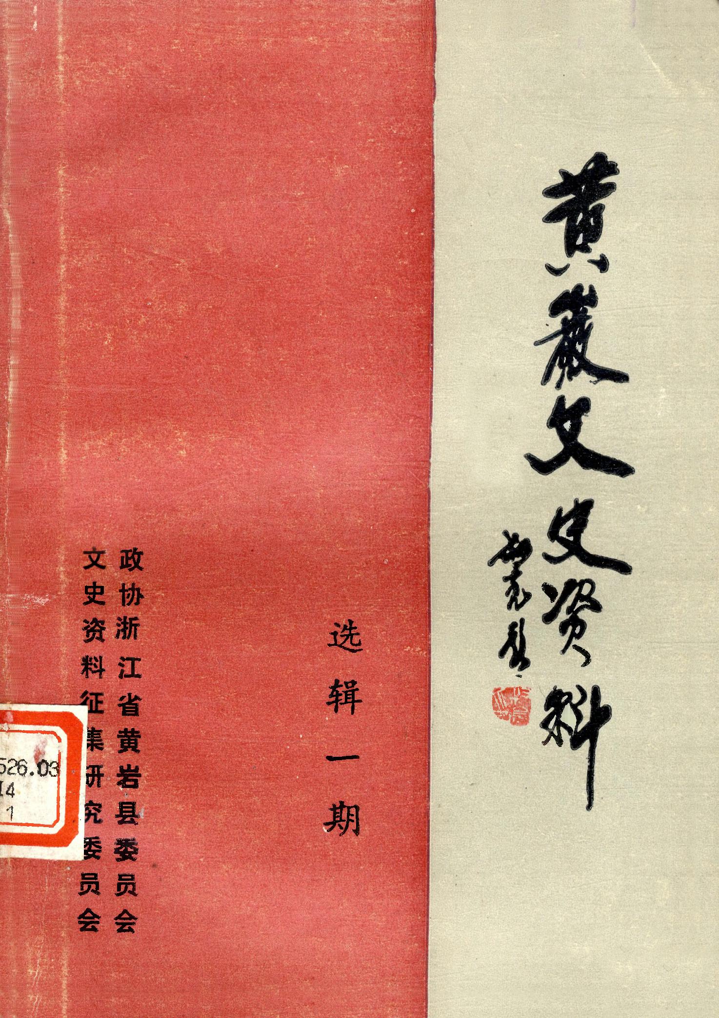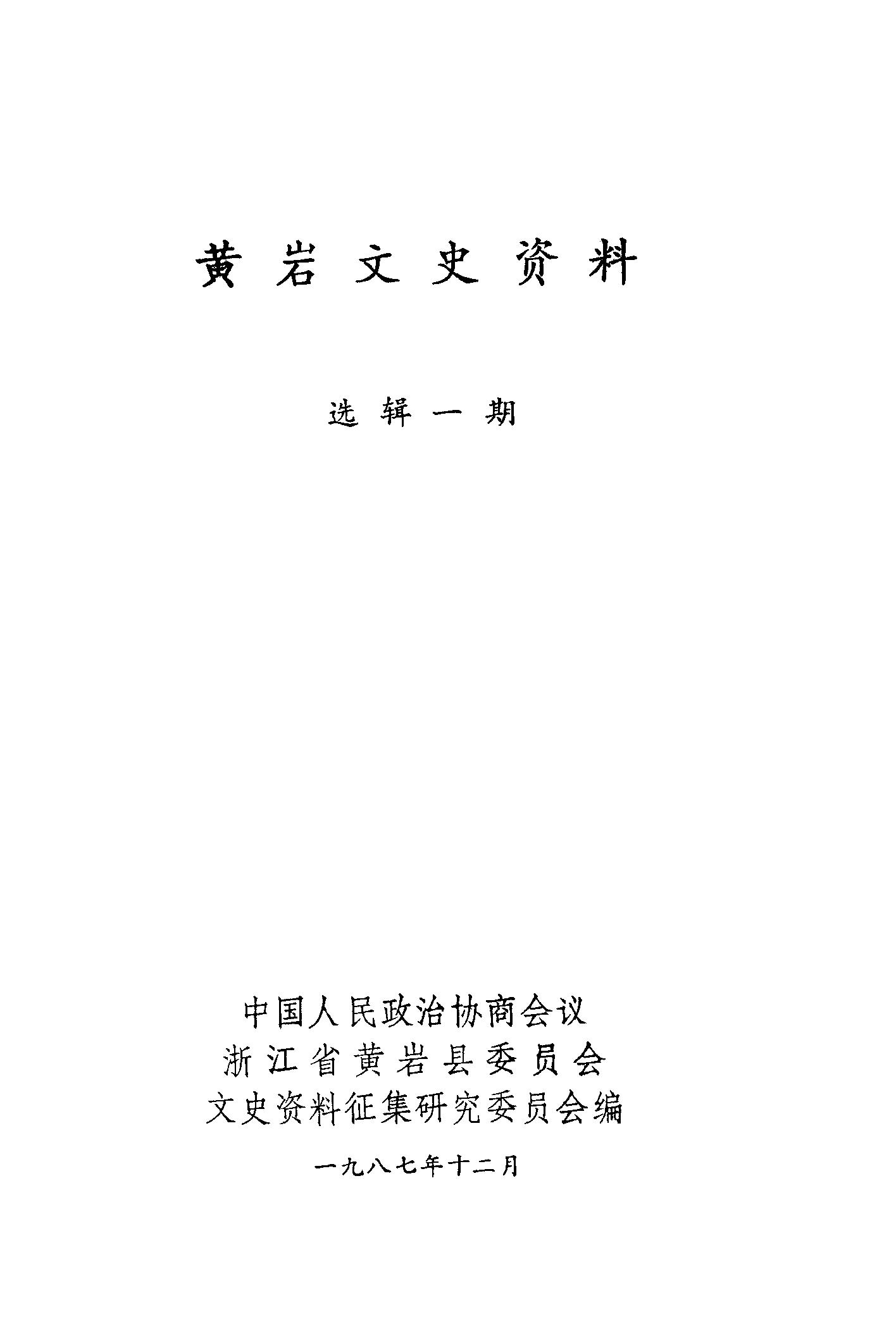 黃巖文史資料選輯一期_政協浙江省黃巖縣委員會文史資料徵集研究委員會
