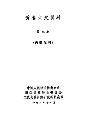 黃巖文史資料第九期_政協浙江省黃巖縣委員會文史資料徵集研究委員會