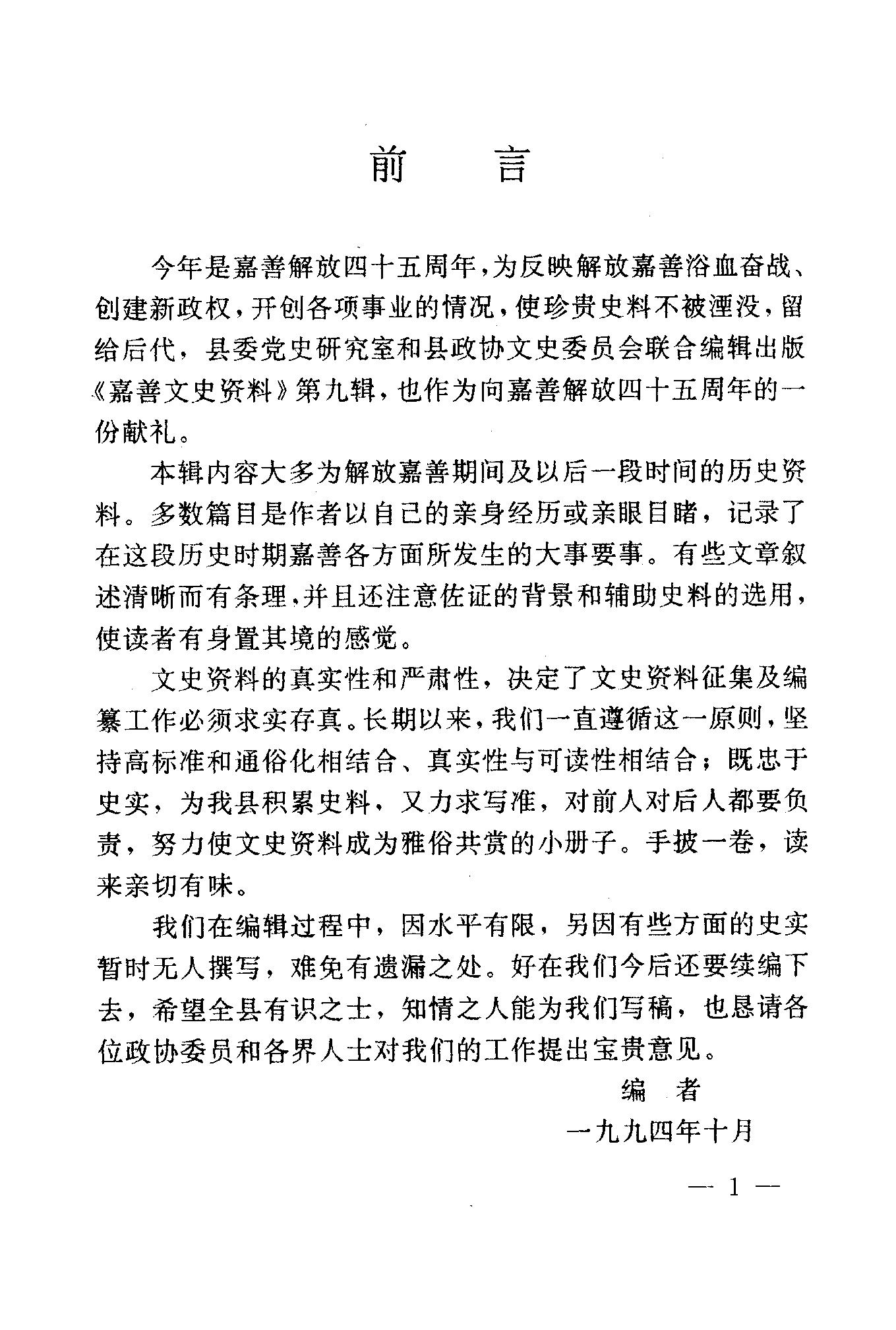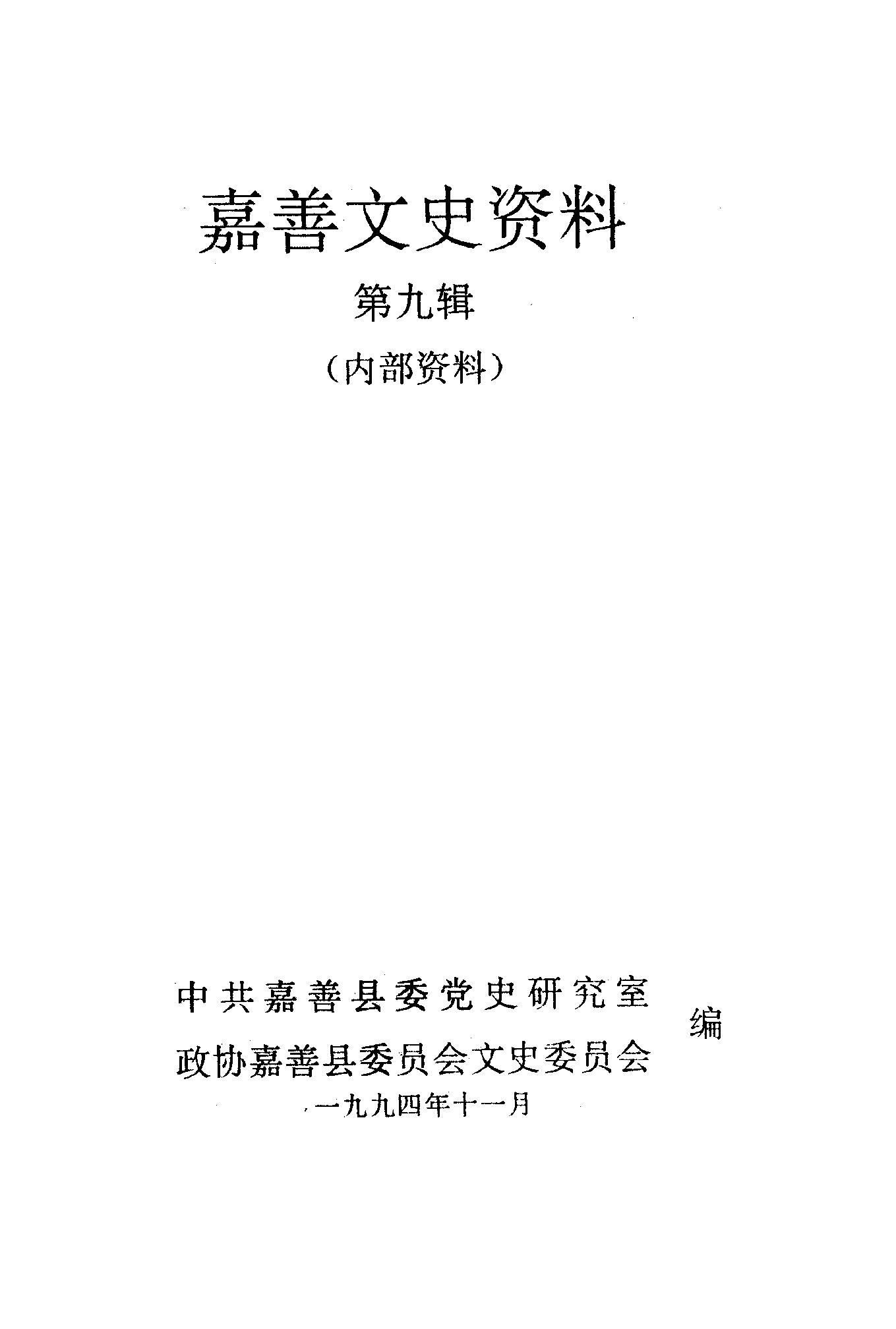 嘉善文史資料第九輯_中共嘉善縣委黨史研究室政協嘉善縣委員會文史委員會中共嘉善縣委黨史研究室