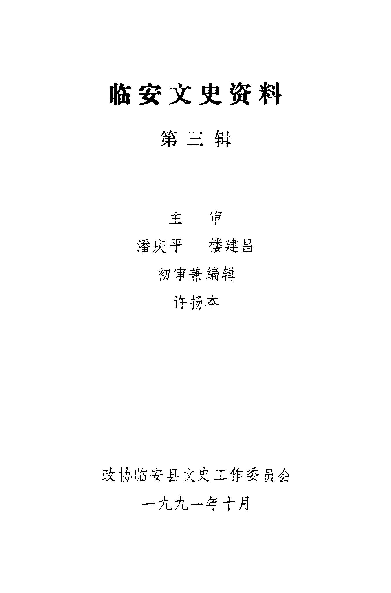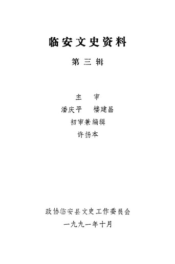 臨安文史資料第三輯_政協臨安縣文史工作委員會