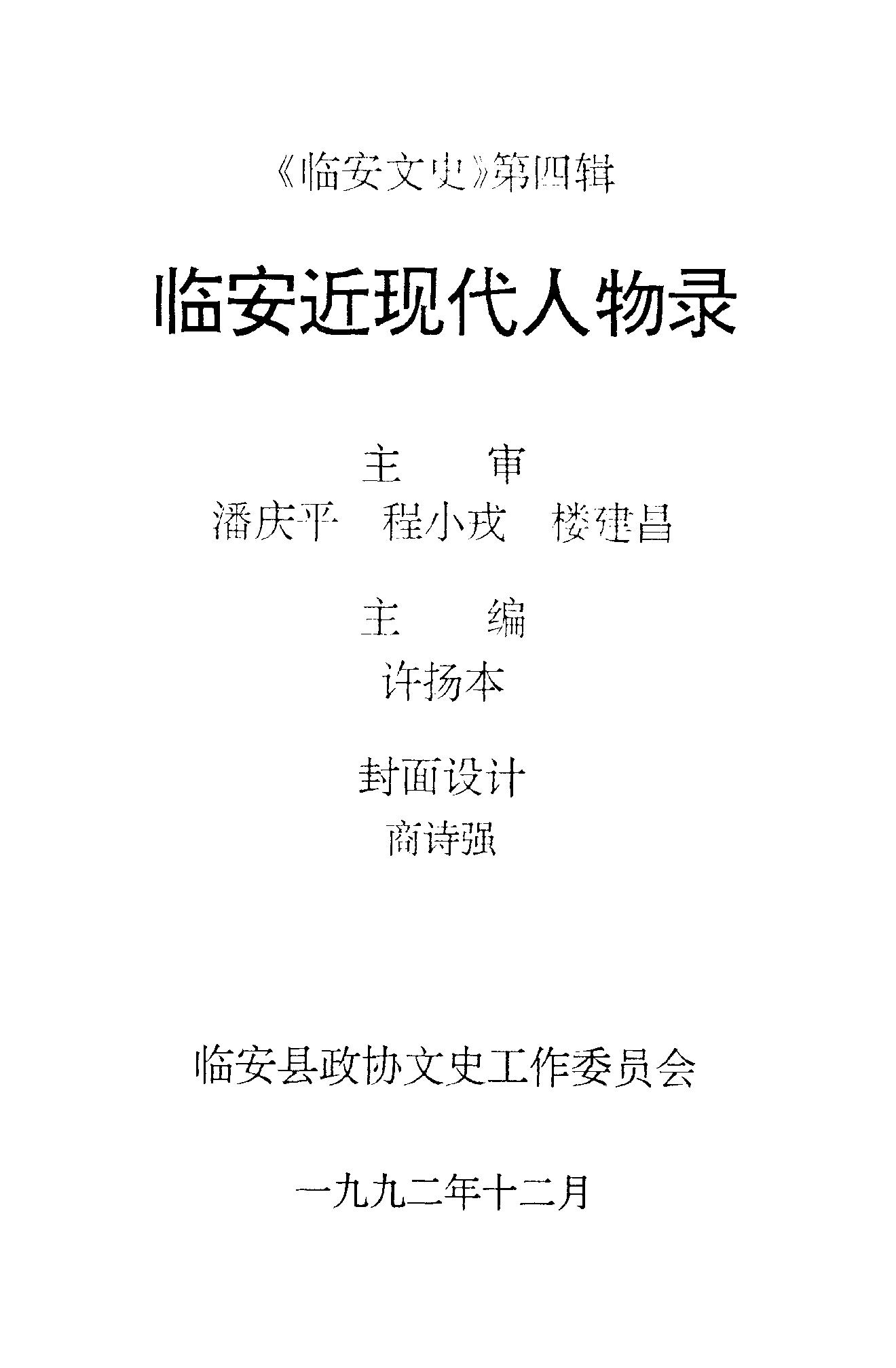 臨安文史第四輯_政協臨安縣文史工作委員會