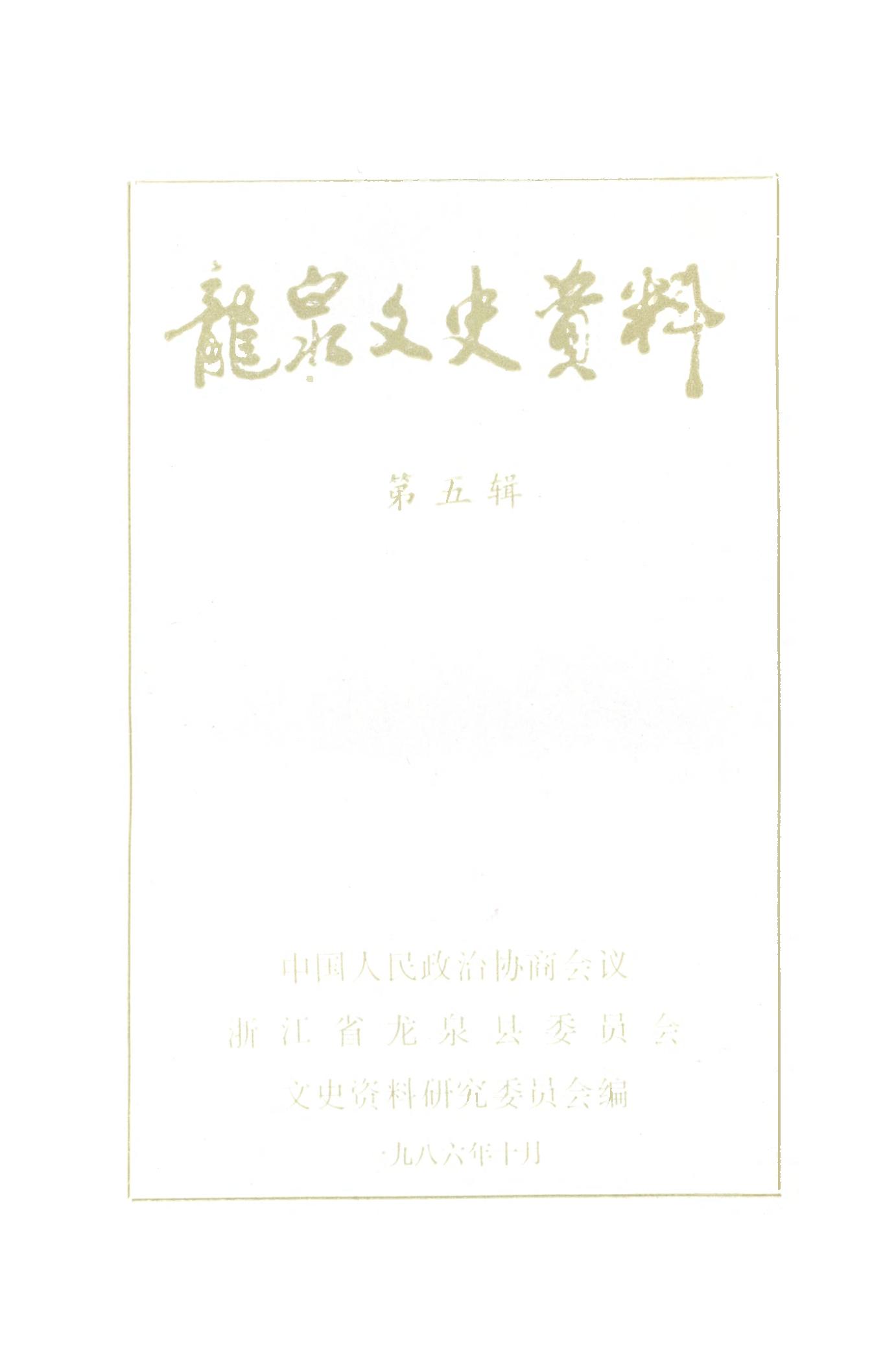 龍泉文史資料第五輯_政協浙江省龍泉縣委員會文史資料研究委員會