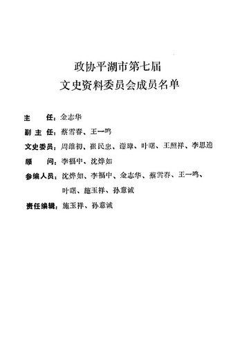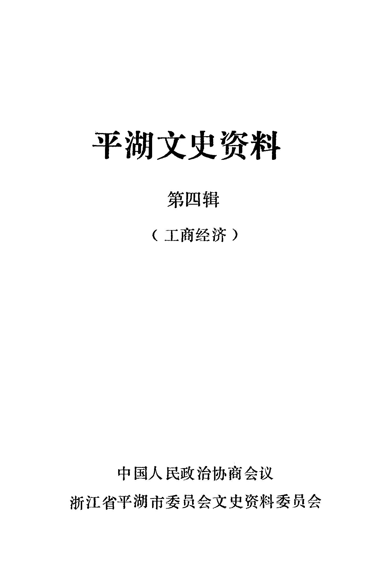 平湖文史資料第四輯_政協浙江省平湖縣委員會文史資料委員會