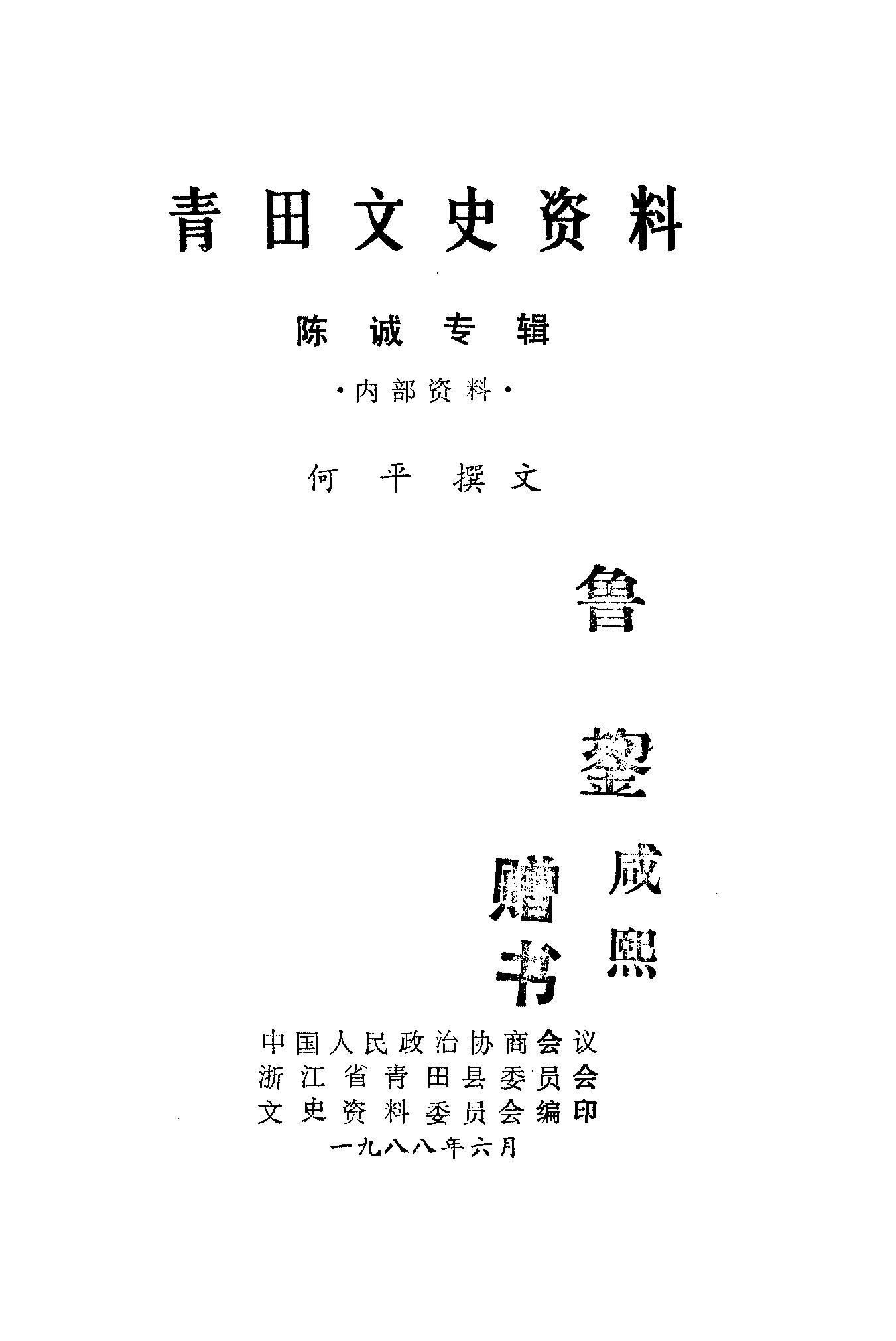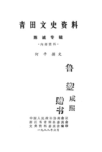 青田文史資料第三輯_政協浙江省青田縣委員會文史資料委員會