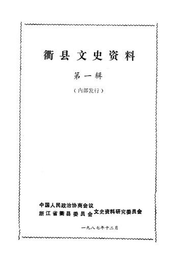 衢縣文史資料第一輯_政協浙江省衢縣委員會文史資料研究委員會