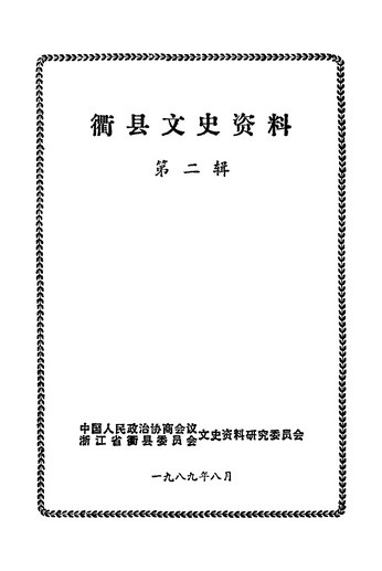 衢縣文史資料第二輯_政協浙江省衢縣委員會文史資料研究委員會