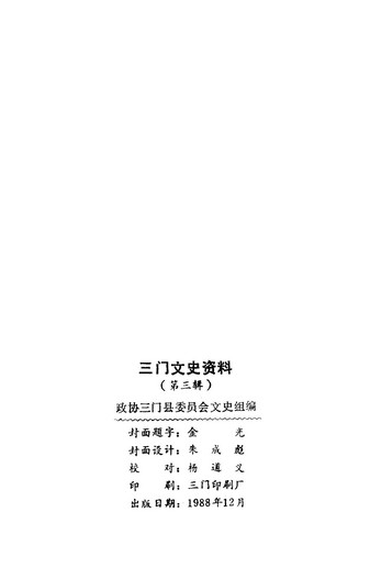 三門文史資料第三輯_政協三門縣委員會文史組