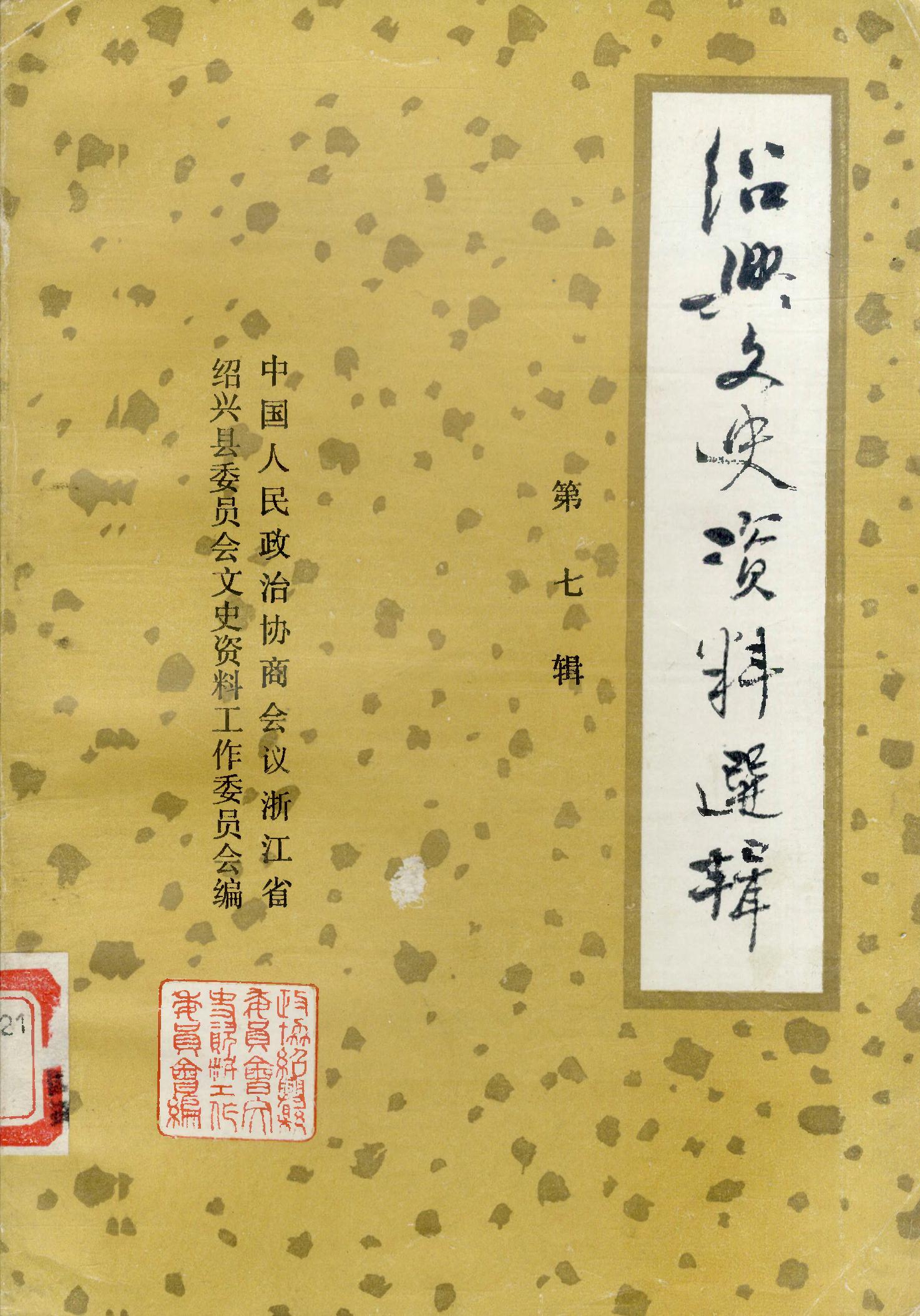 紹興文史資料選輯第七輯_政協浙江省紹興縣委員會文史資料工作委員會