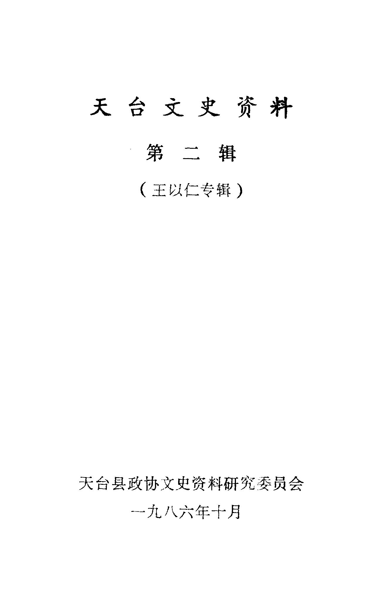 天台文史資料第二輯_天台縣政協文史資料研究委員會