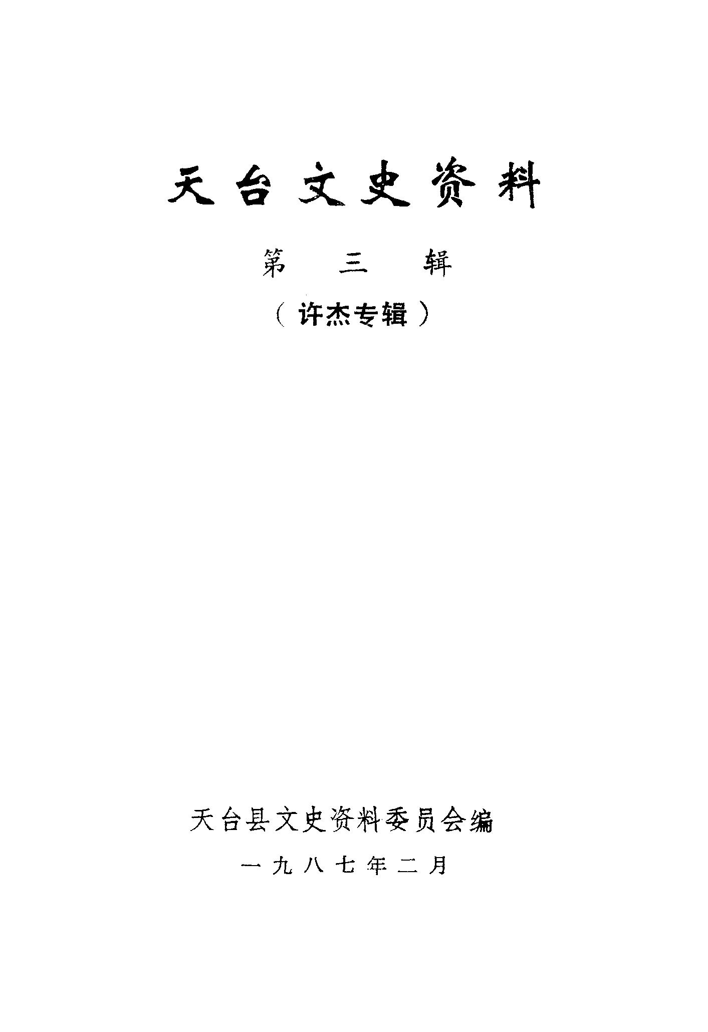 天台文史資料第三輯_天台縣政協文史資料研究委員會