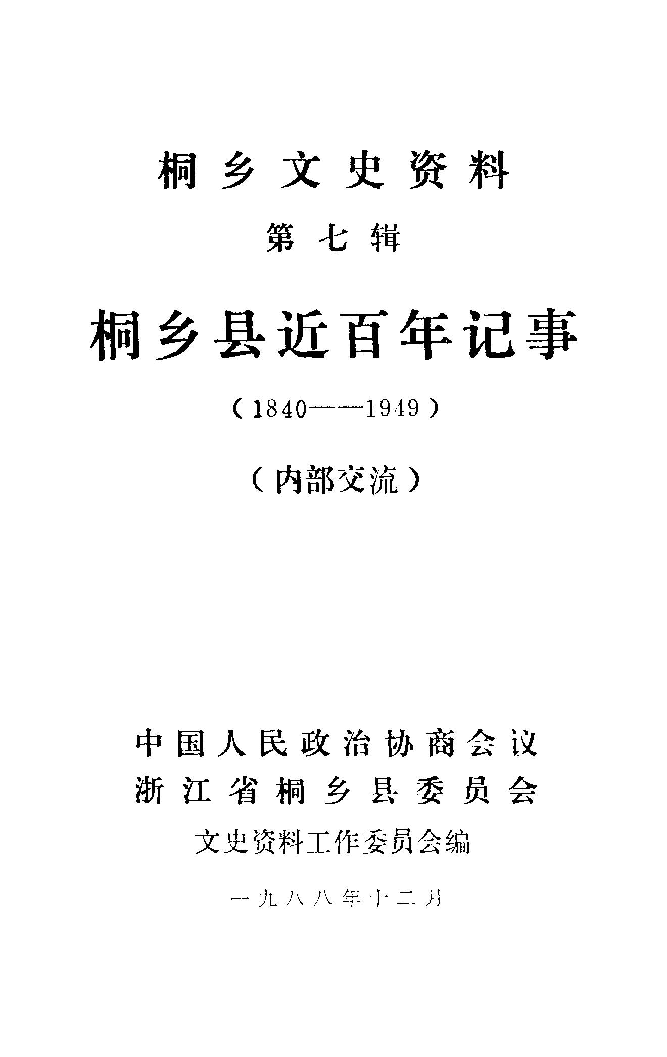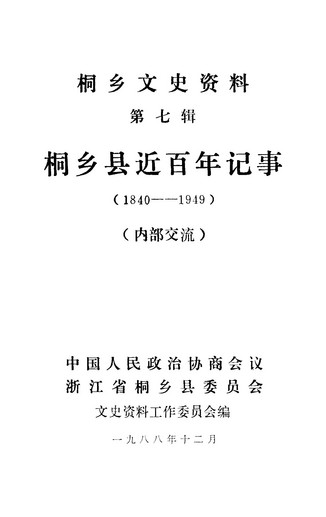 桐鄉文史資料第七輯_政協浙江省桐鄉縣委員會文史資料工作委員會