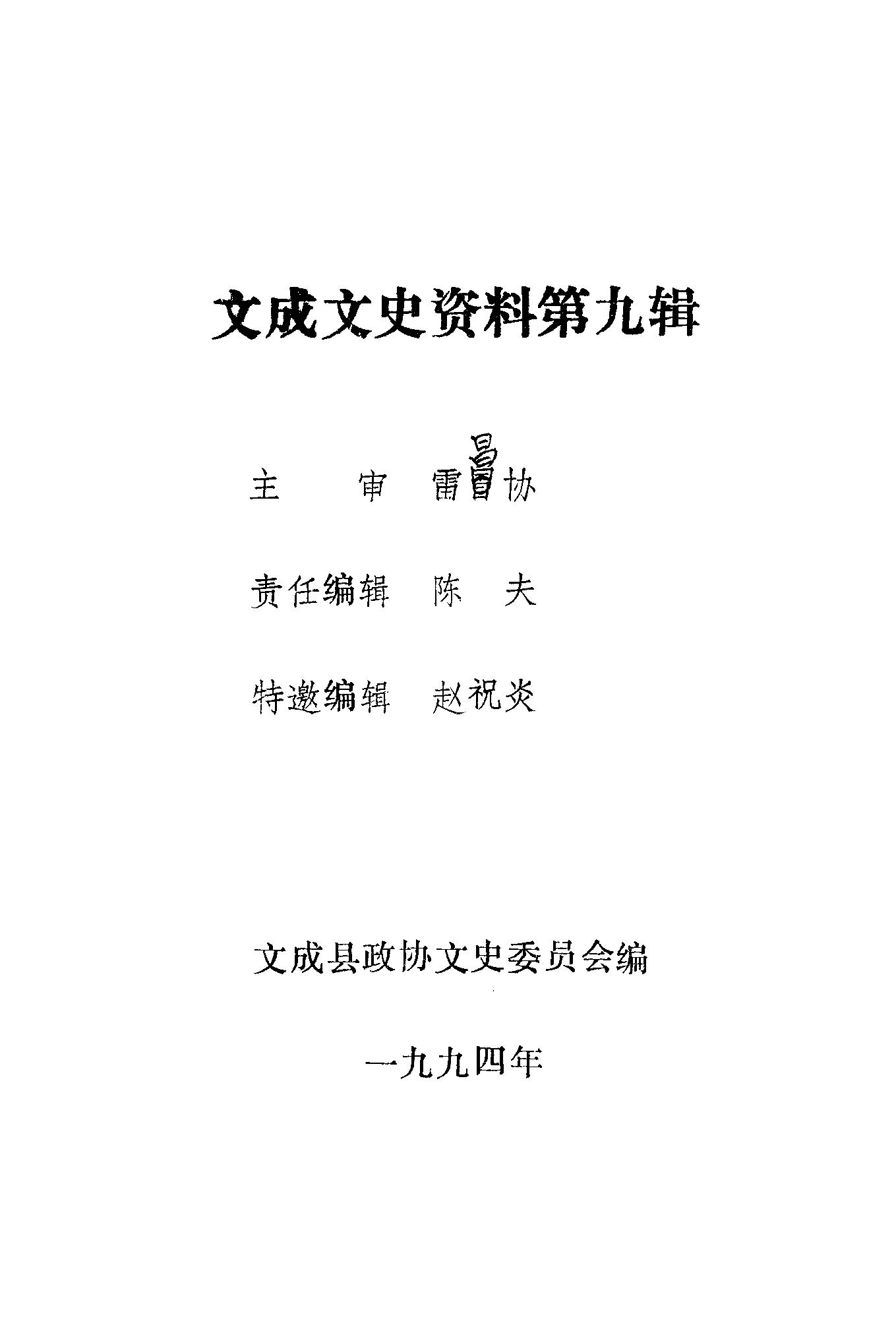 文成文史資料第九輯_文成縣政協文史資料工作委員會