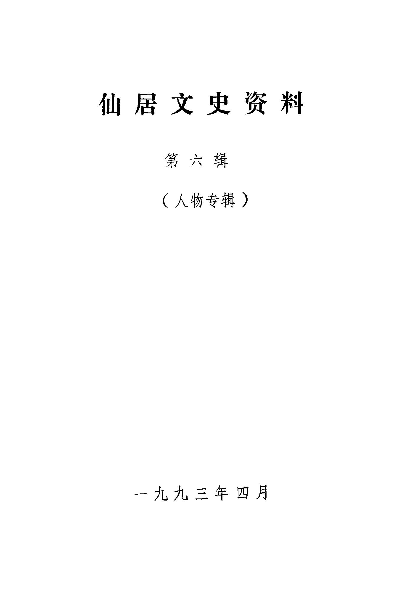 仙居文史資料第六輯_政協浙江省仙居縣委員會文史資料工作委員會