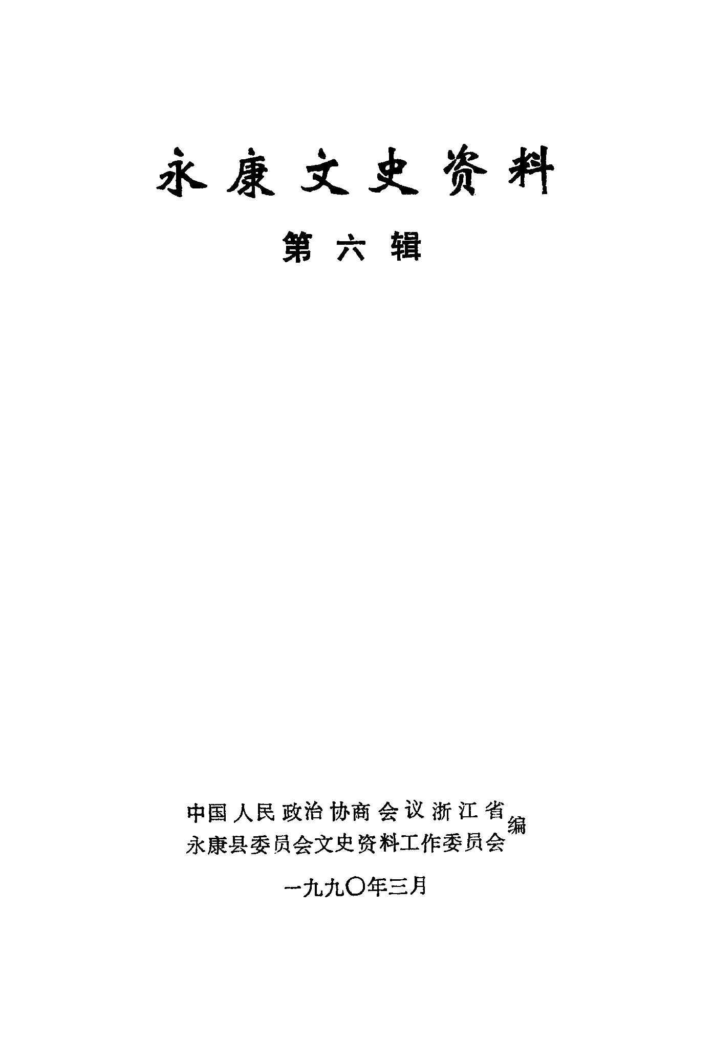 永康文史資料第六輯_政協浙江省永康縣委員會文史資料工作委員會