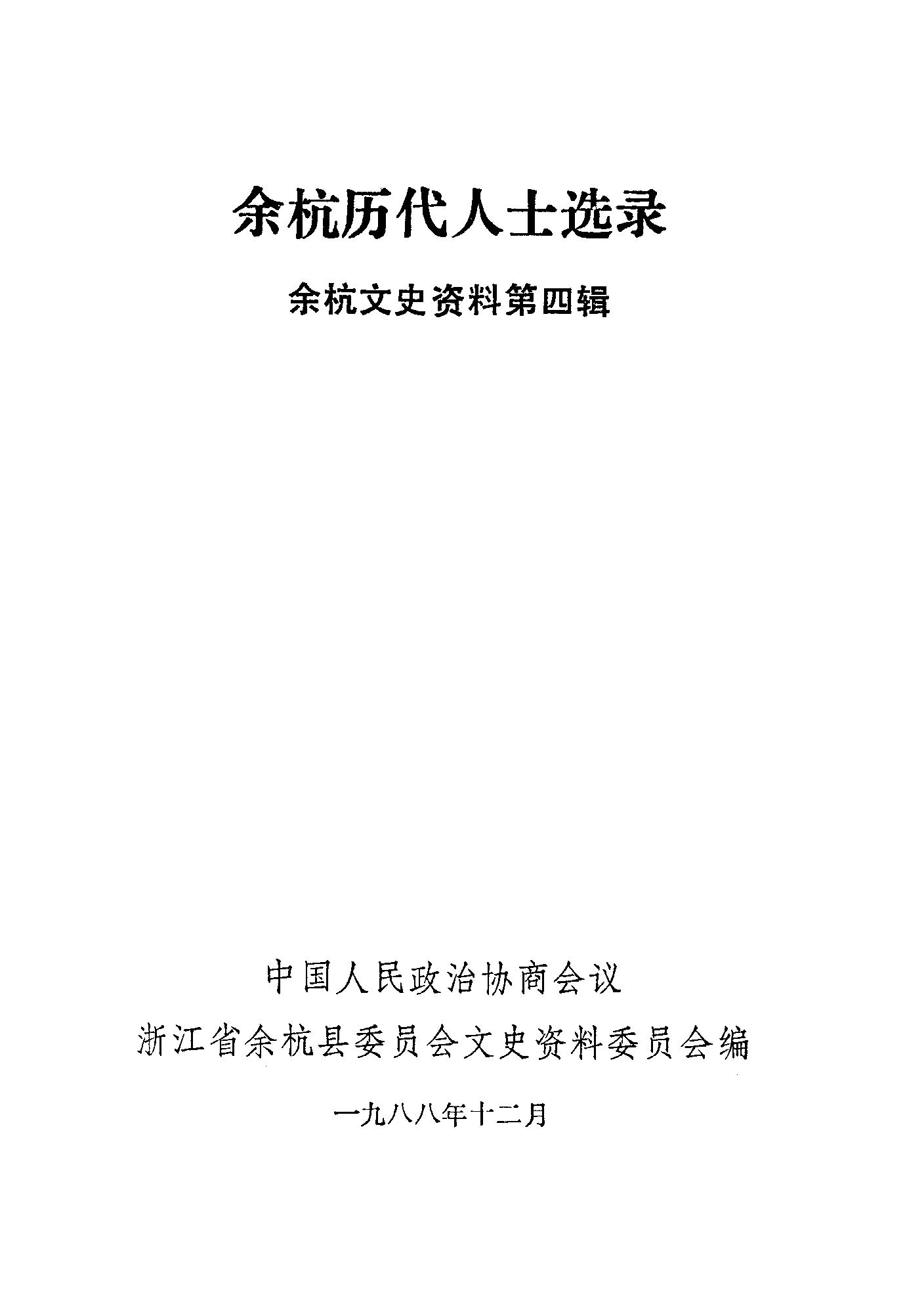 餘杭文史資料第四輯_政協浙江省餘杭縣委員會文史資料委員會