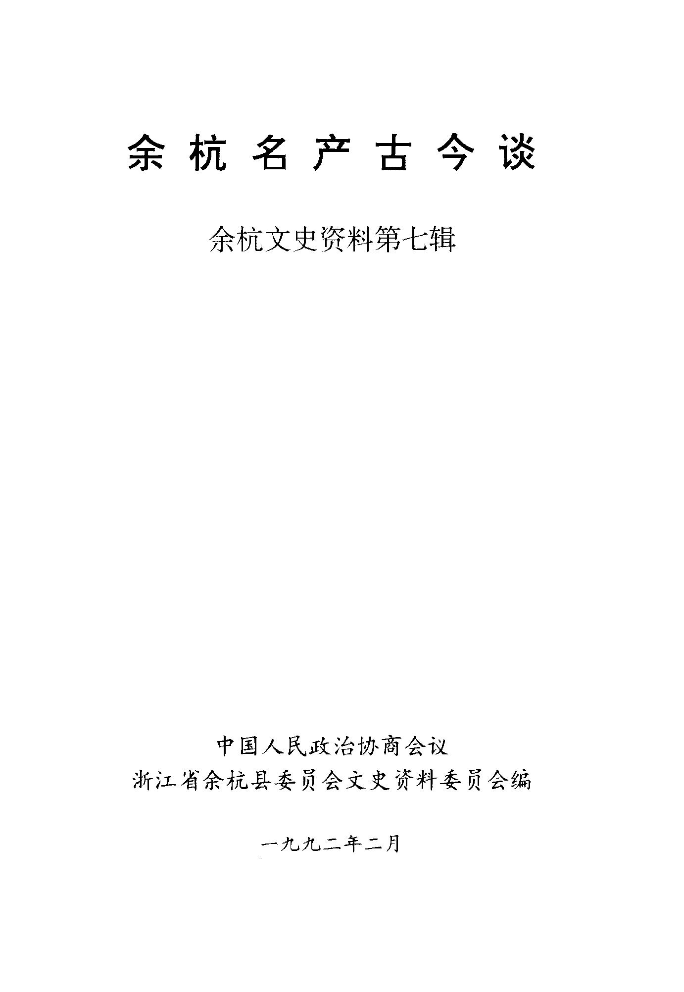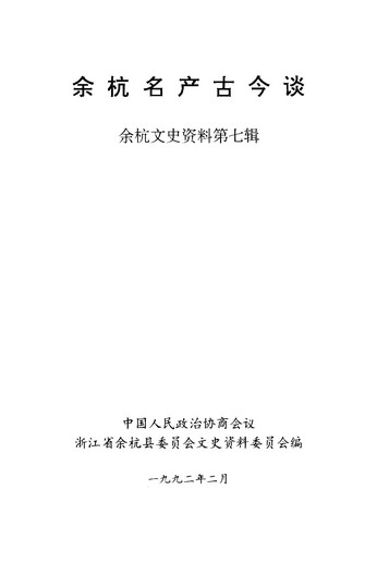 餘杭文史資料第七輯_政協浙江省餘杭縣委員會文史資料委員會