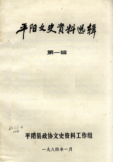 平陽文史資料選輯第一輯_平陽縣政協文史資料工作組