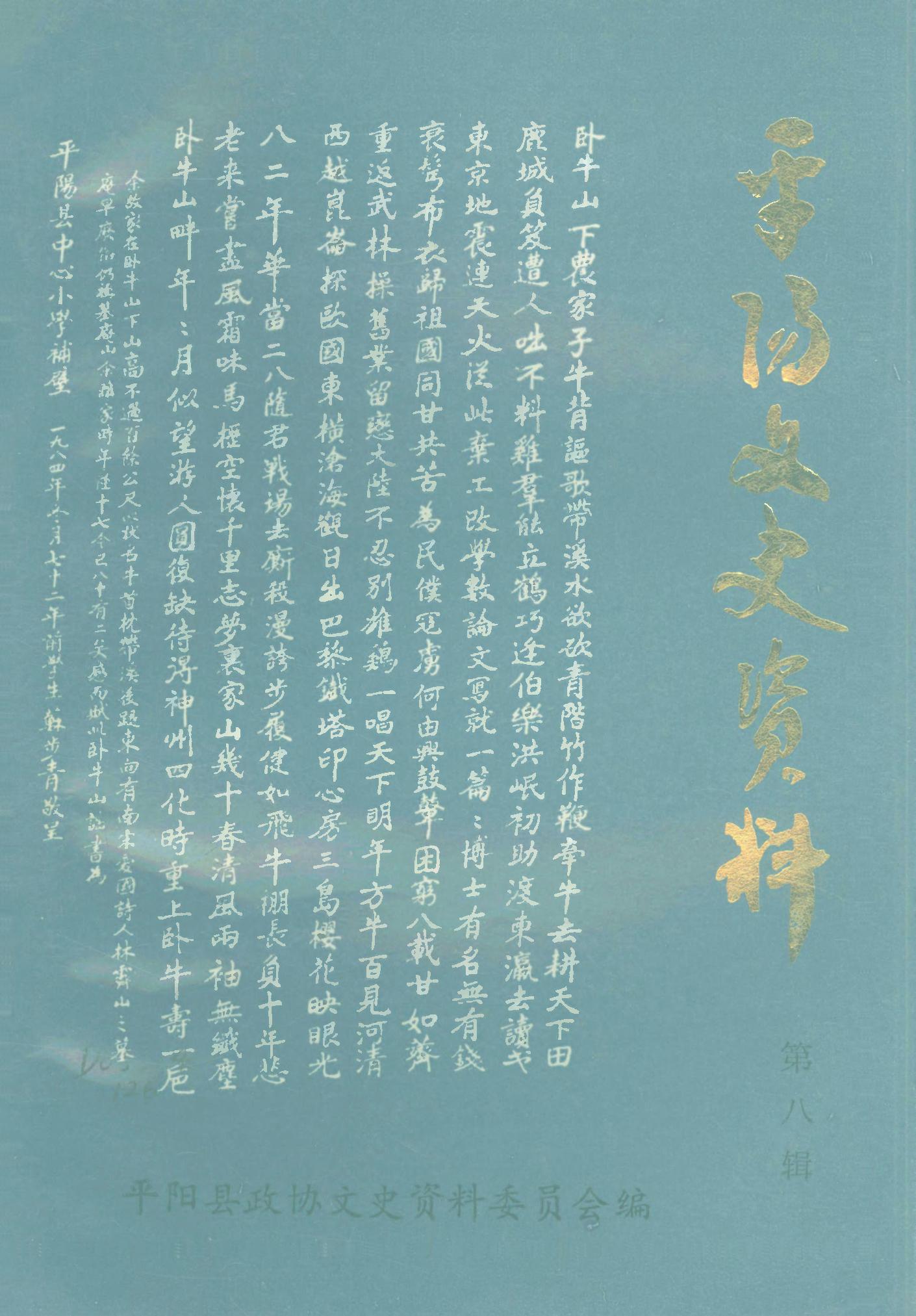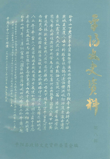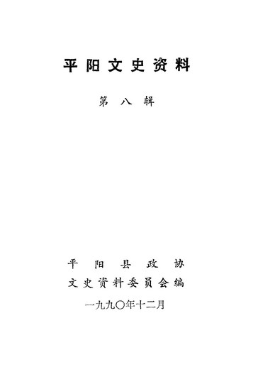 平陽文史資料第八輯_平陽縣政協文史資料委員會平陽縣