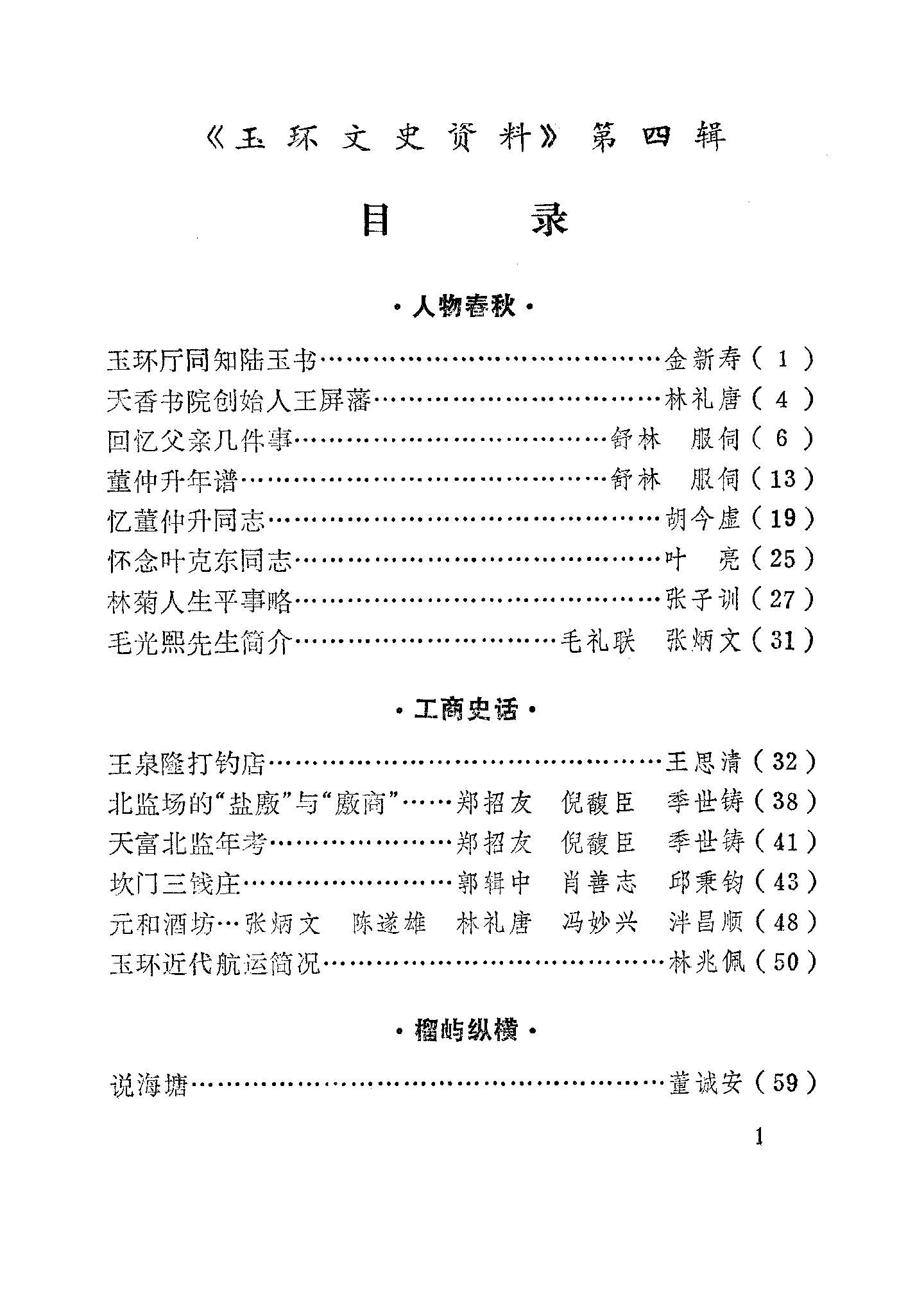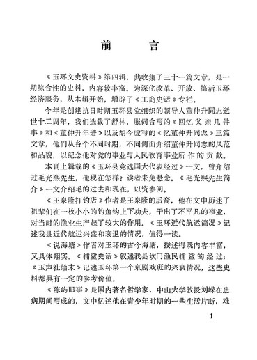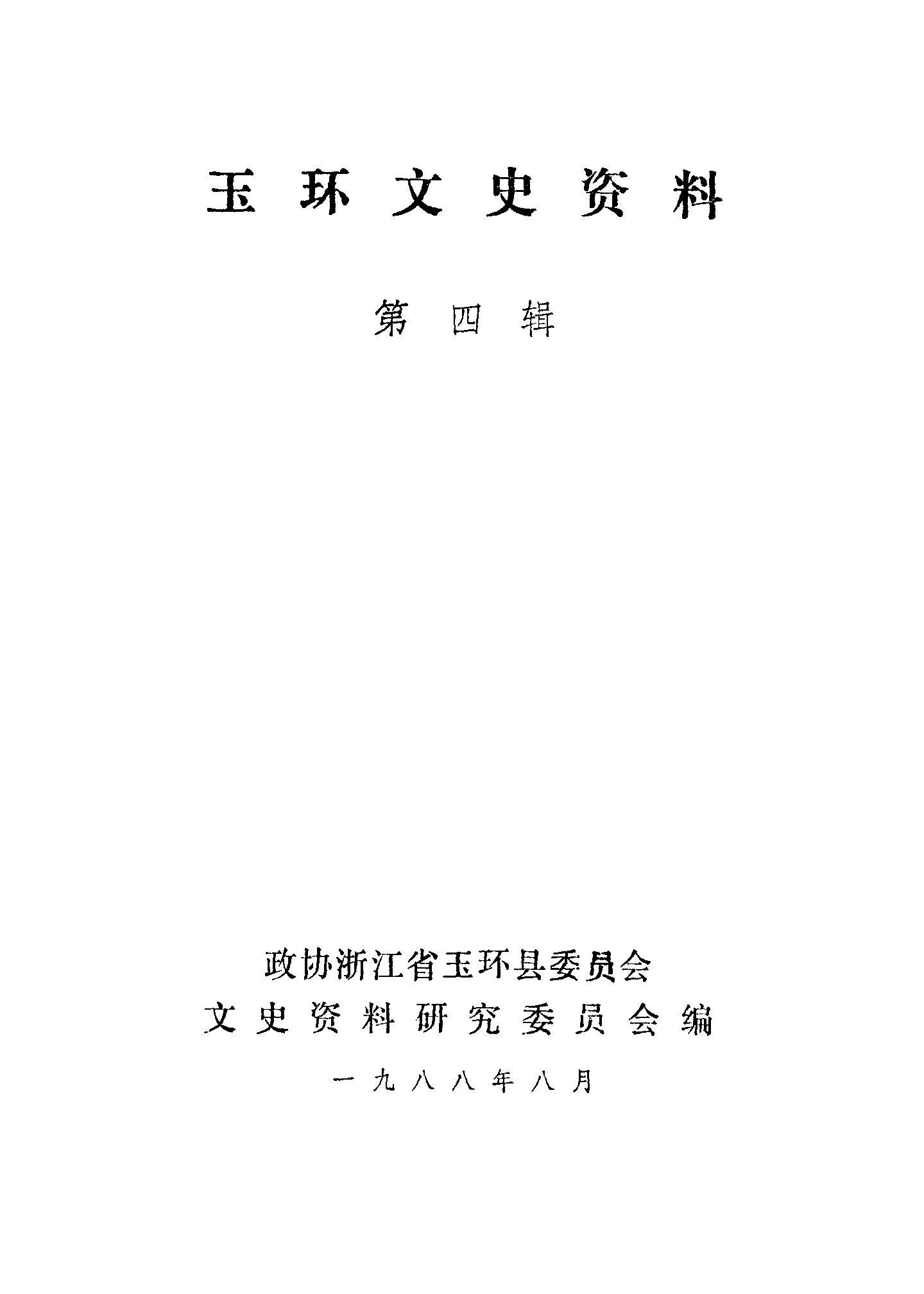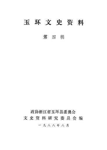 玉環文史資料第四輯_政協浙江省玉環縣委員會文史資料研究委員會