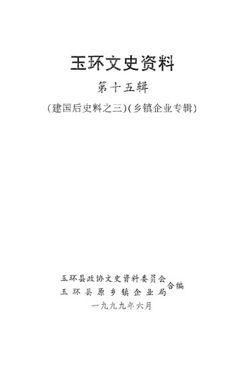 玉環文史資料第十五輯_玉環縣政協文史資料委員會玉環縣原鄉鎮企業局