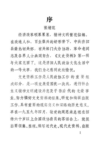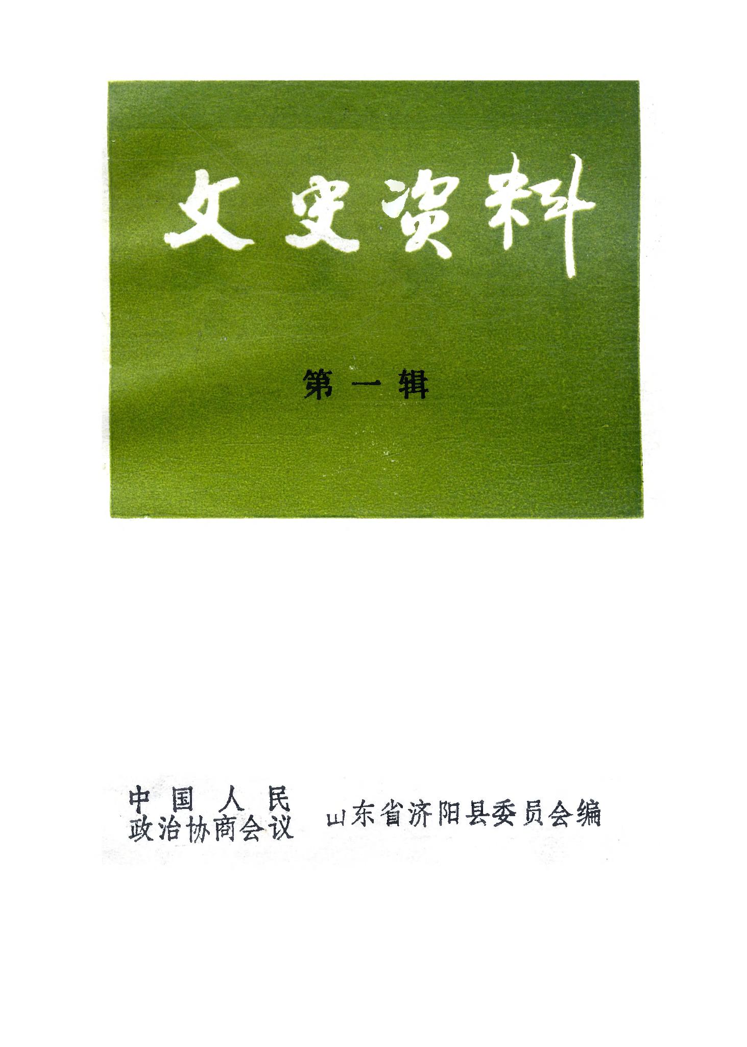 濟陽文史資料第一輯_政協山朹省濟陽縣委員會