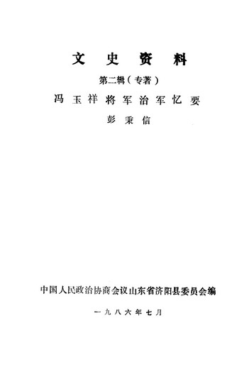 濟陽文史資料第二輯_政協山朹省濟陽縣委員會