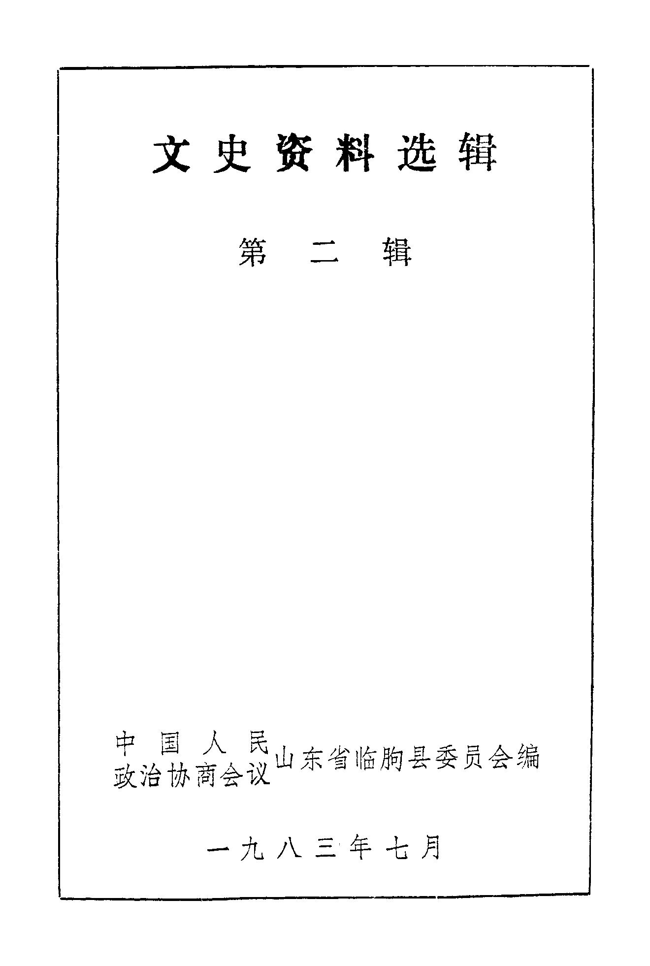 文史資料選輯第二輯_政協山朹省臨朐縣委員會
