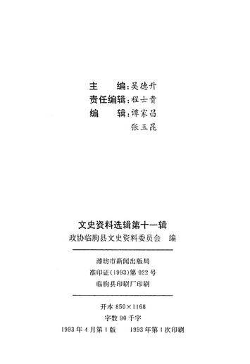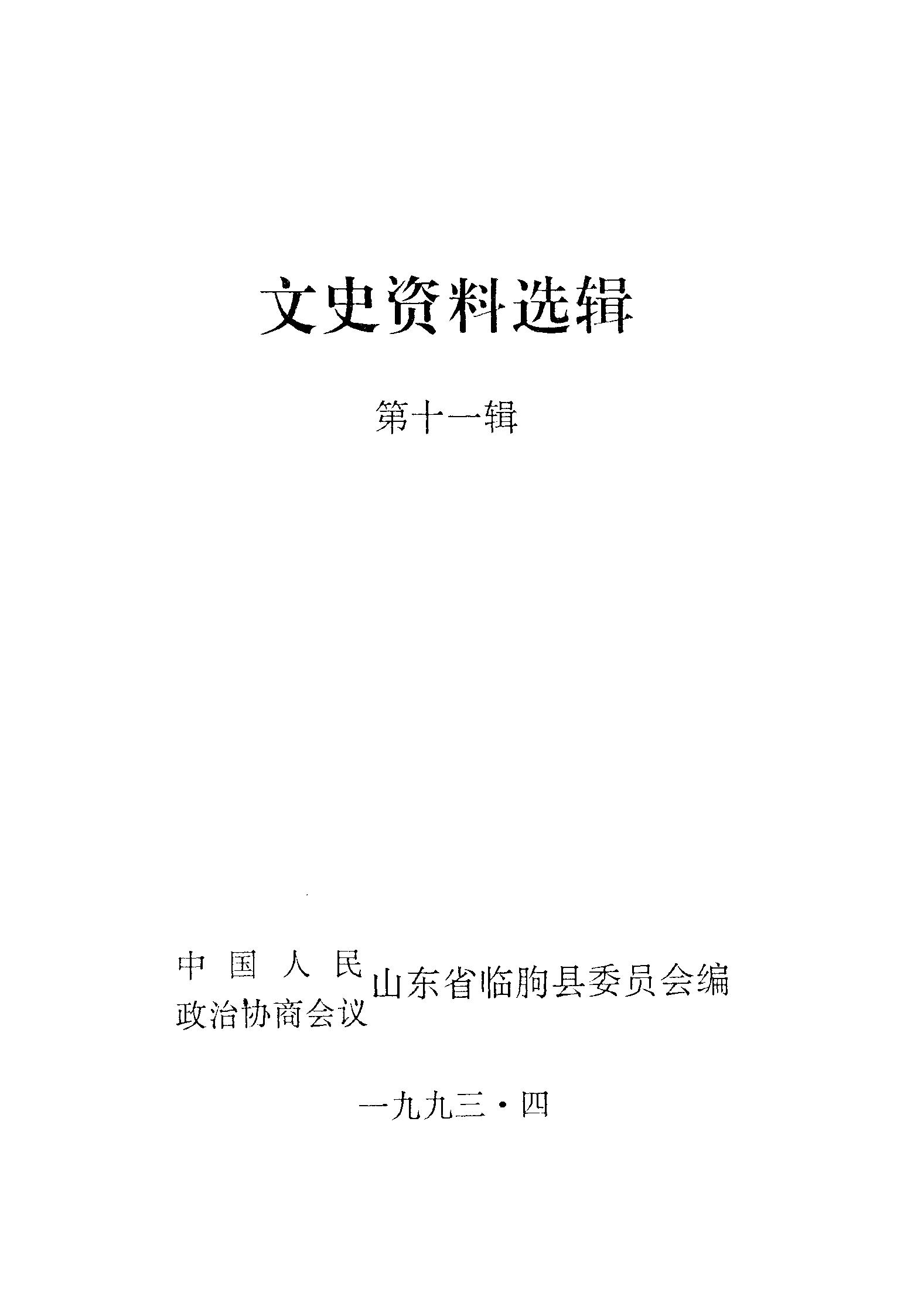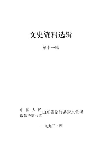文史資料選輯第十一輯_政協山朹省臨朐縣委員會