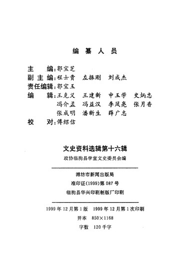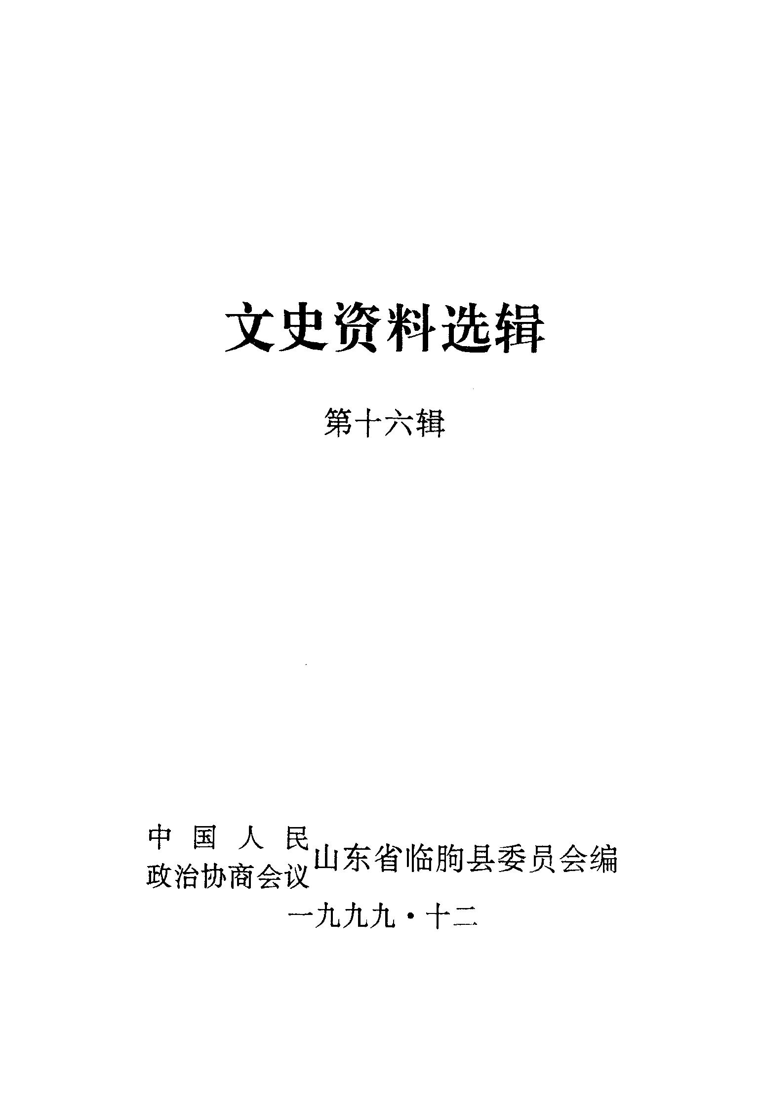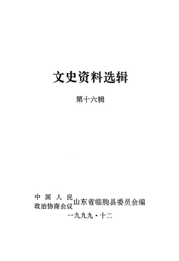 文史資料選輯第十六輯_政協山朹省臨朐縣委員會
