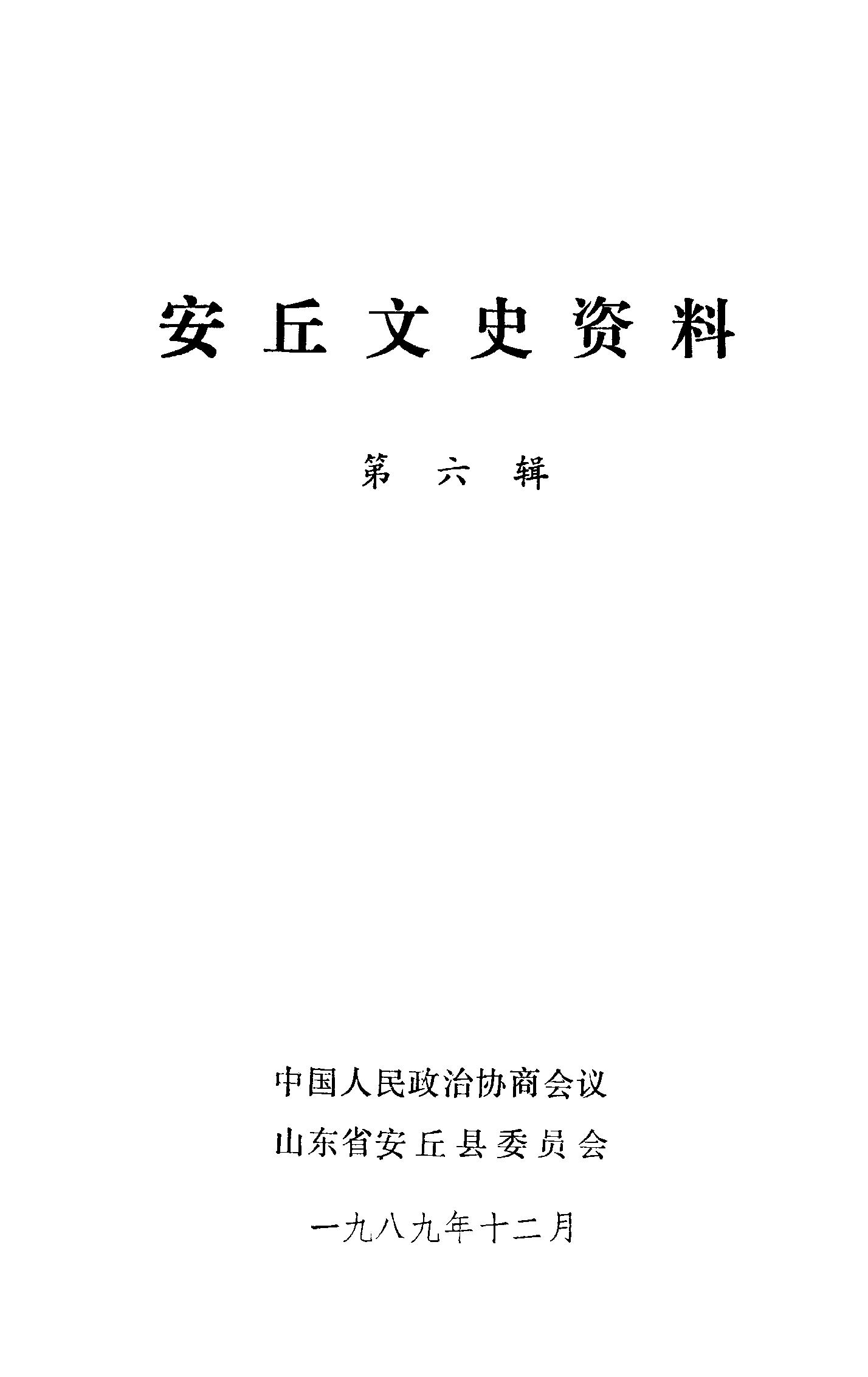 安丘文史資料選輯第六輯_政協山朹省安丘縣委員會