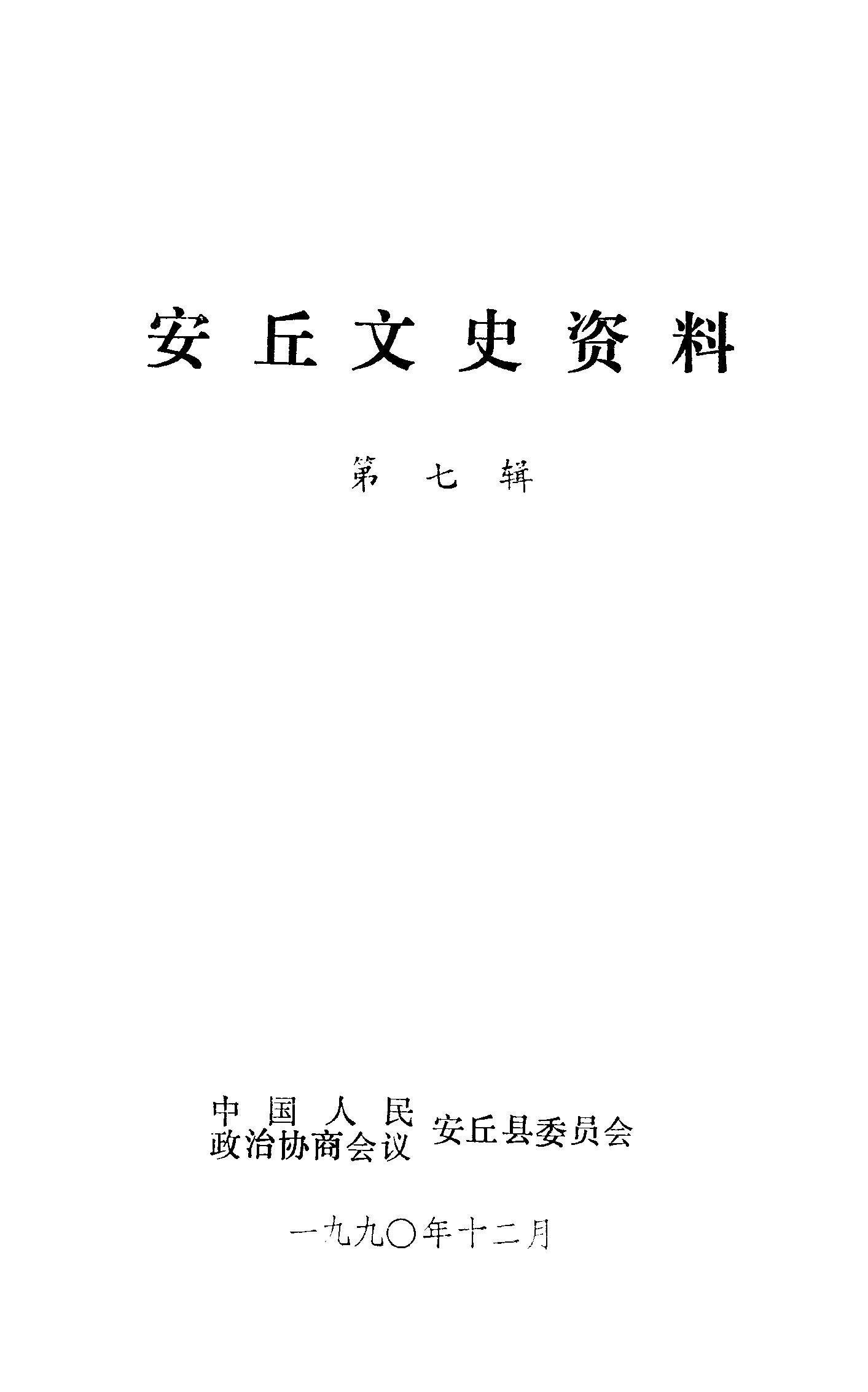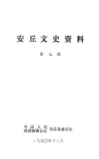 安丘文史資料選輯第七輯_政協安丘縣委員會