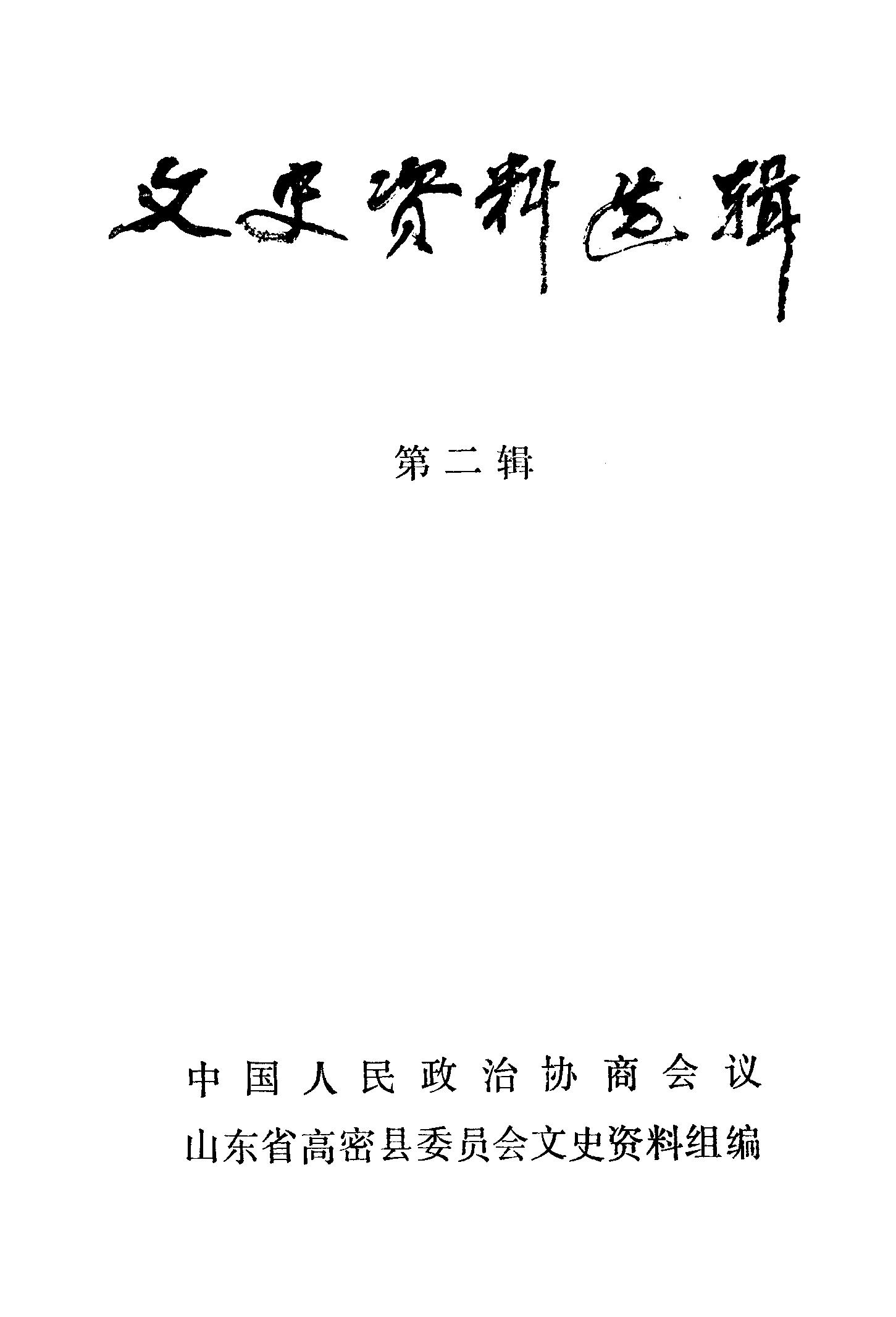 文史資料選輯第二輯_政協山朹省高密縣委員會文史資料組