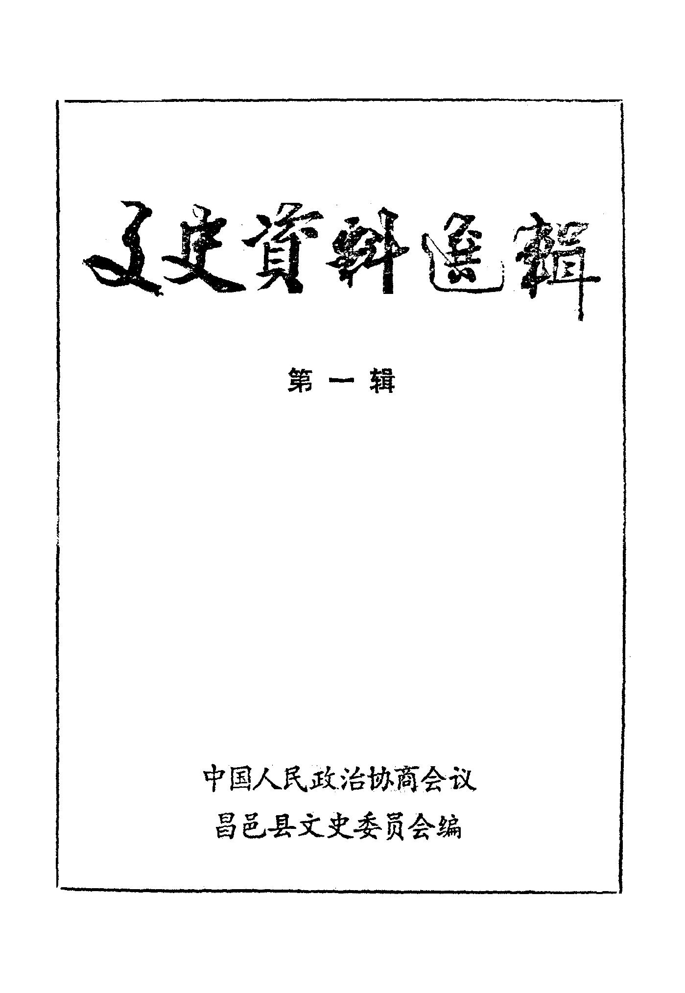 昌邑文史資料第一輯_政協昌邑縣文史資料委員會