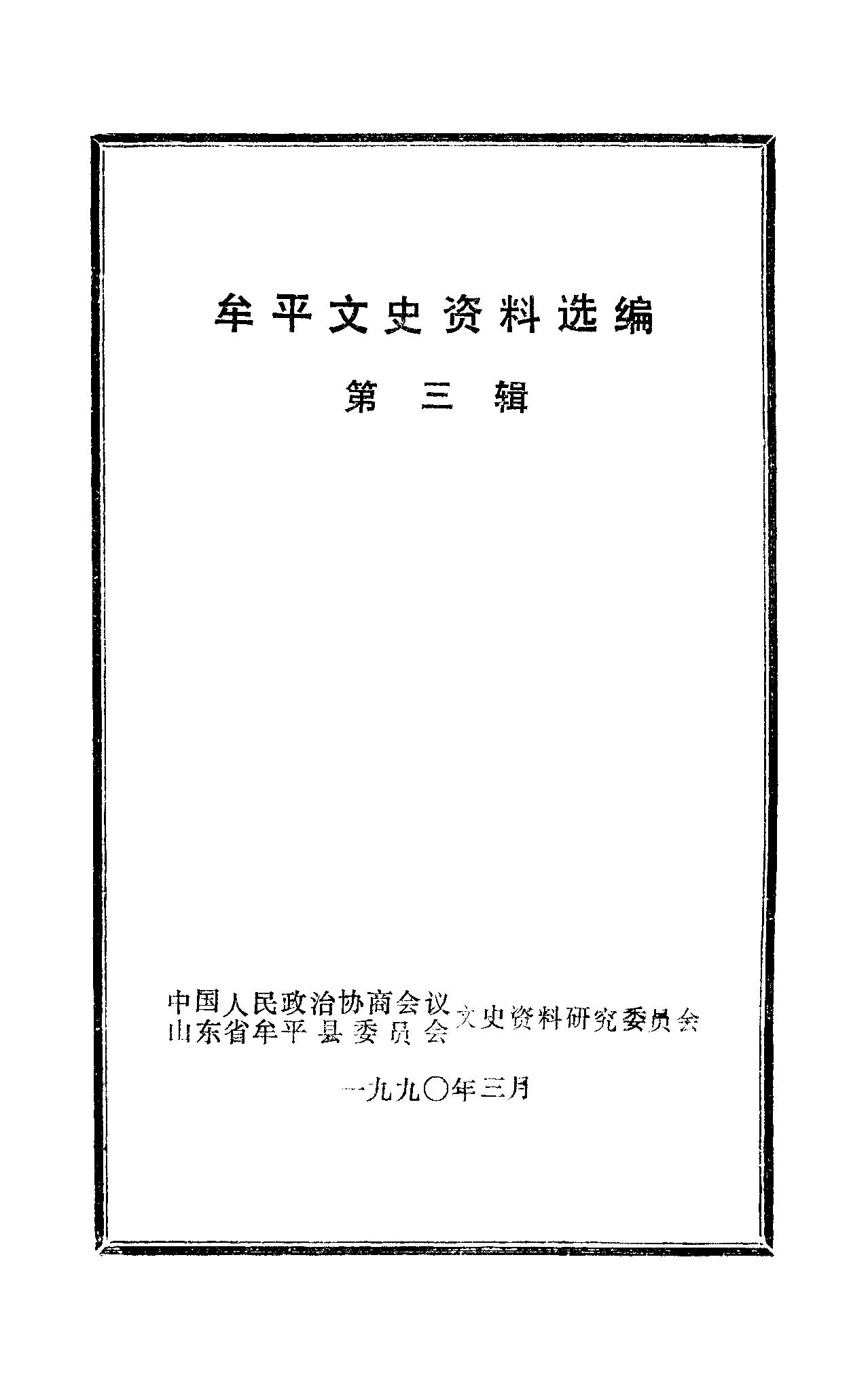 牟平文史資料選編第三輯_政協牟平縣文史委員會