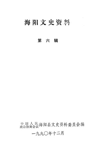 海陽文史資料第六輯_政協海陽縣文史資料委員會