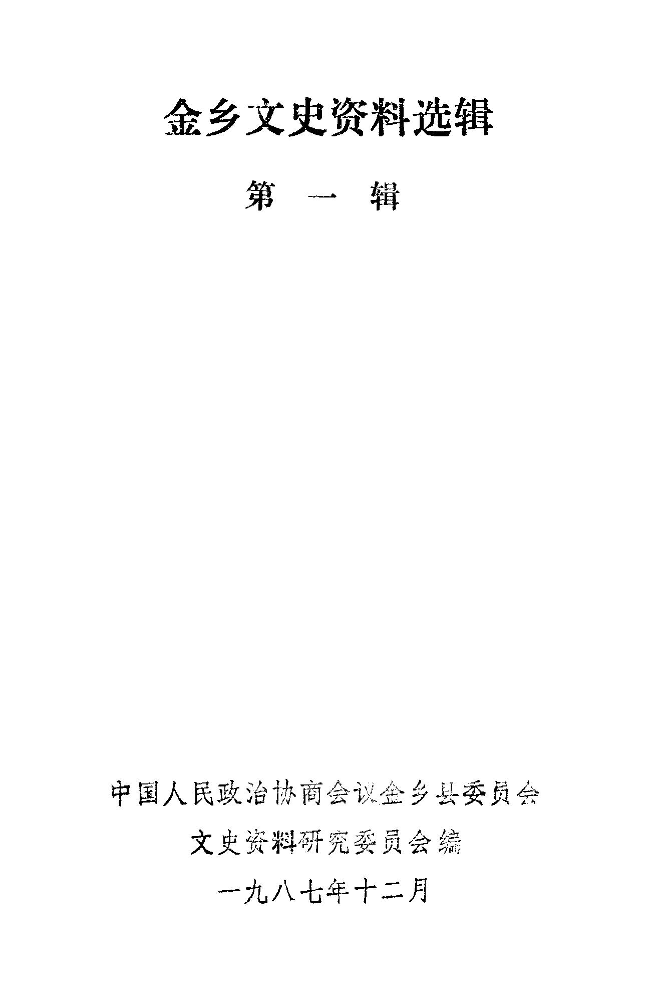 金鄉文史資料選輯第一輯_政協金鄉縣委員會文史資料研究委員會